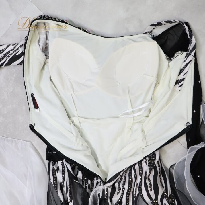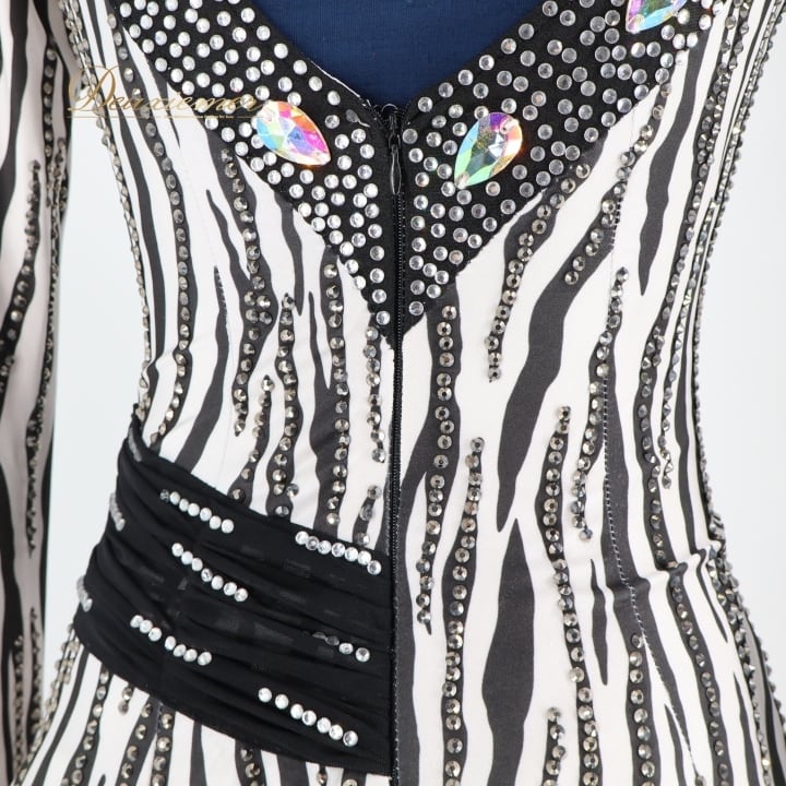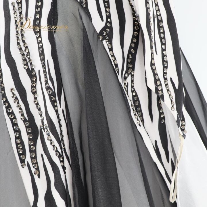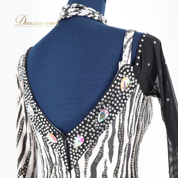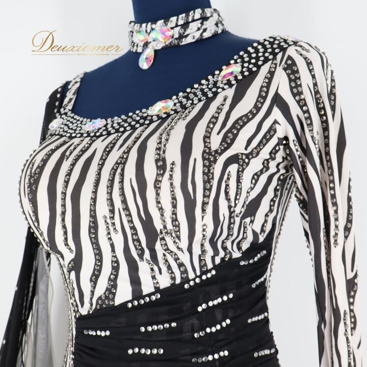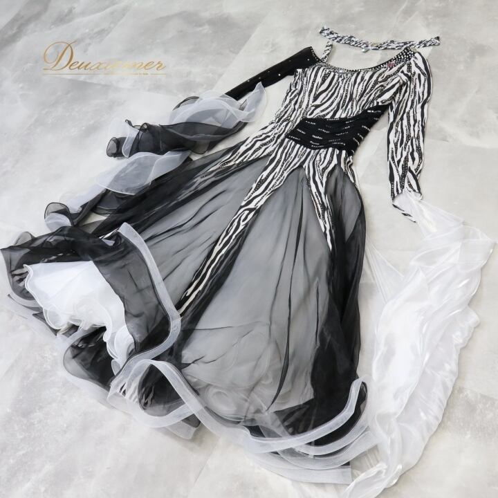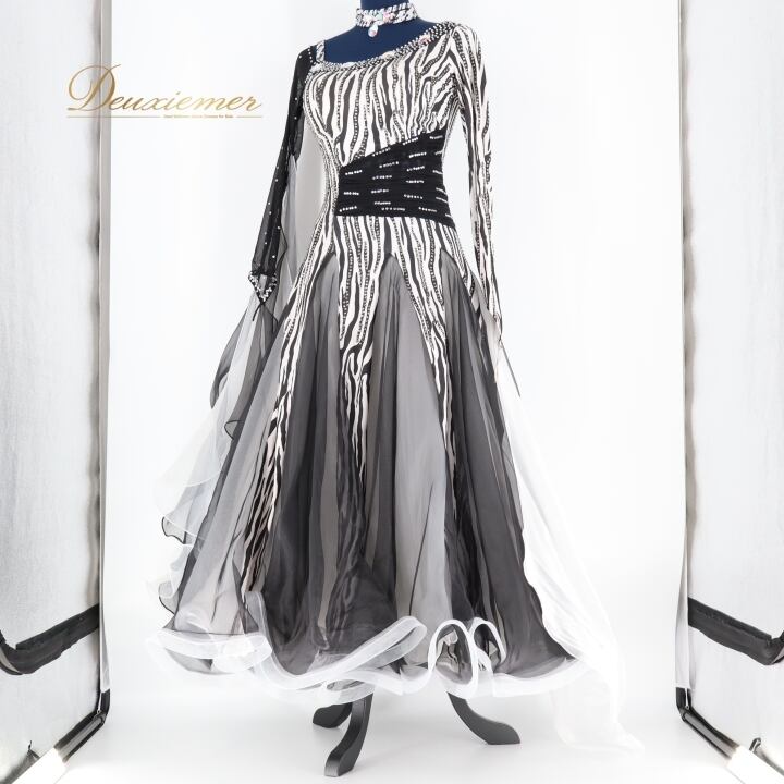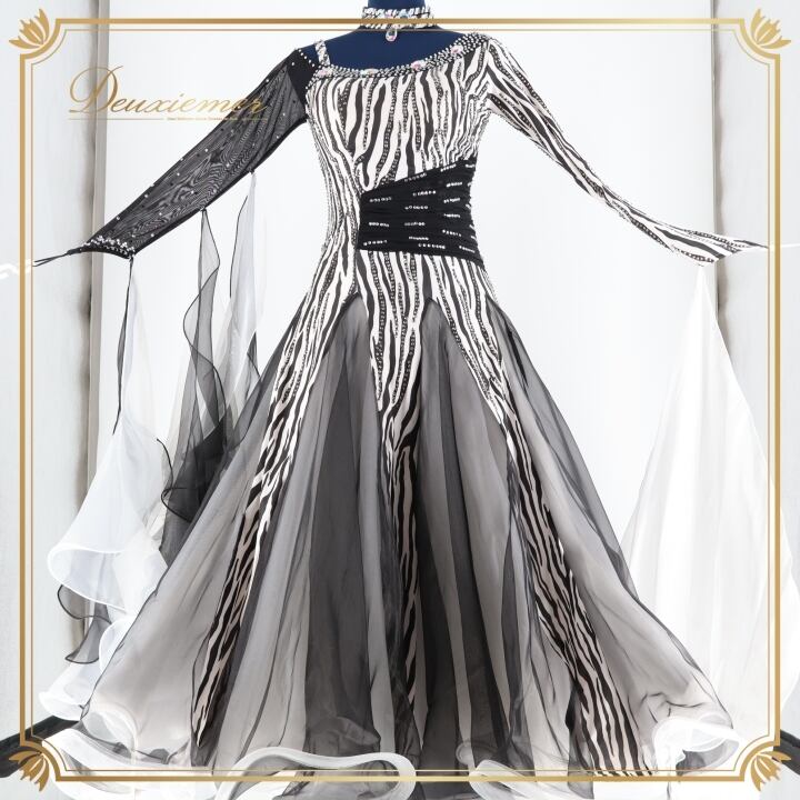 社交ダンス 衣装 スタンダード ドレス スタンダードドレス ワンピース フロート ゼブラ 柄 模様 デモ 競技 ダンス パーティ 発表会 ブラック系 ホワイト系 Wish plus スカート ふんわり エレガント おしゃれ 競技用 パーティー 発表会用 フォーマル