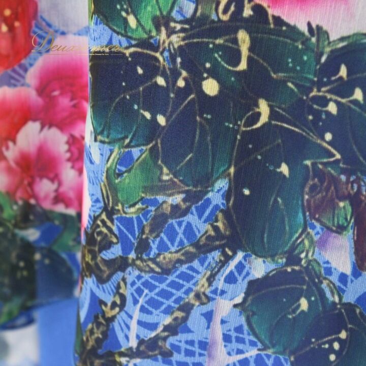 ▽ノースリーブのドレスに花柄の薄い布を重ねたデザイン