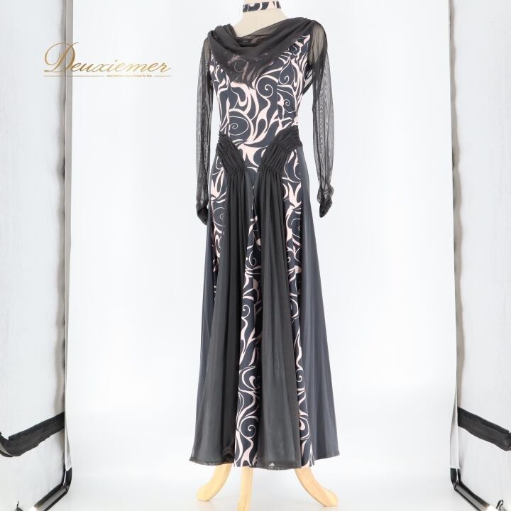 #社交ダンス #ダンス衣装 #ワンピース #ダンスドレス #可愛い #グレー #薄ピンク #軽い素材 #ふんわりスカート #伸縮性 #サイズS #ファスナー #女性用トルソー #ポリエステル #ポリウレタン #ダンスファッション #ダンススタイル #衣装コーデ #ダンスパーティー #パフォーマンス #ENUTSU