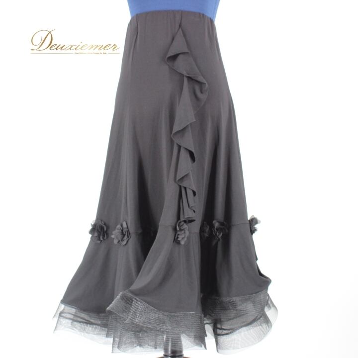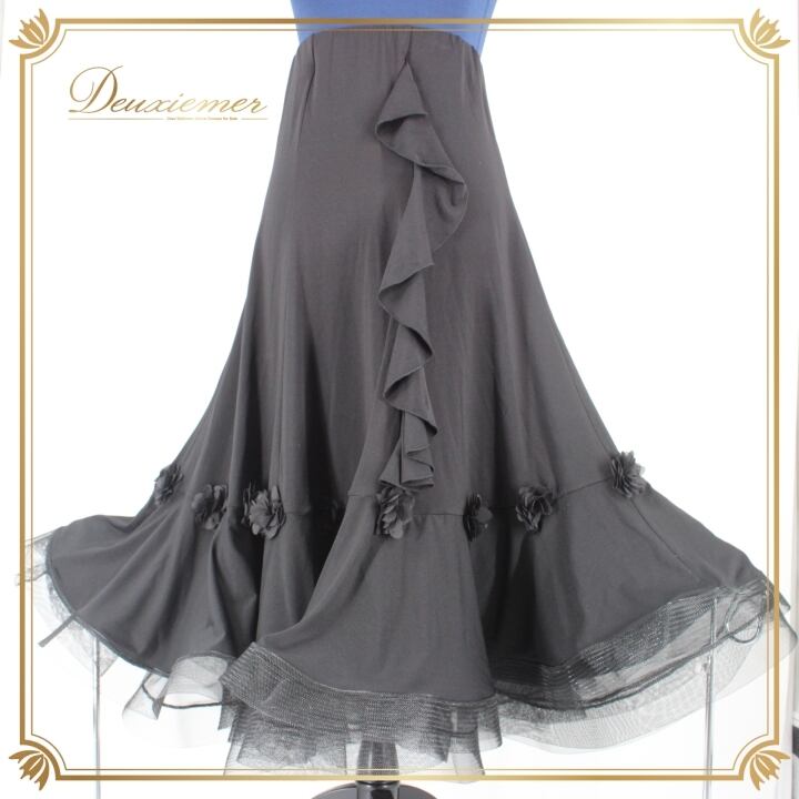 社交ダンス 衣装 スタンダード スカート レッスンウェア 女性用 レディース オールシーズン 黒 ブラック系 無地 花飾り フリル シンプル 練習着 社交 ダンス 衣装 スカート 女性用 ドレス 伸縮性 洗練された アーバンブラック ボリューム 動き