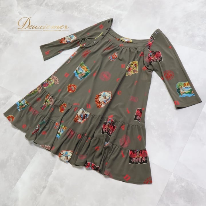 レディース トクコプルミエヴォル TOKUKO 1er VOL トップス チュニック 柄 模様 トクコ tokuko 日本製 軽い 薄い カーキ系 グレイ系 おしゃれ ノースリーブ カジュアル シンプル かわいい 普段着 レディースファッション 軽やか