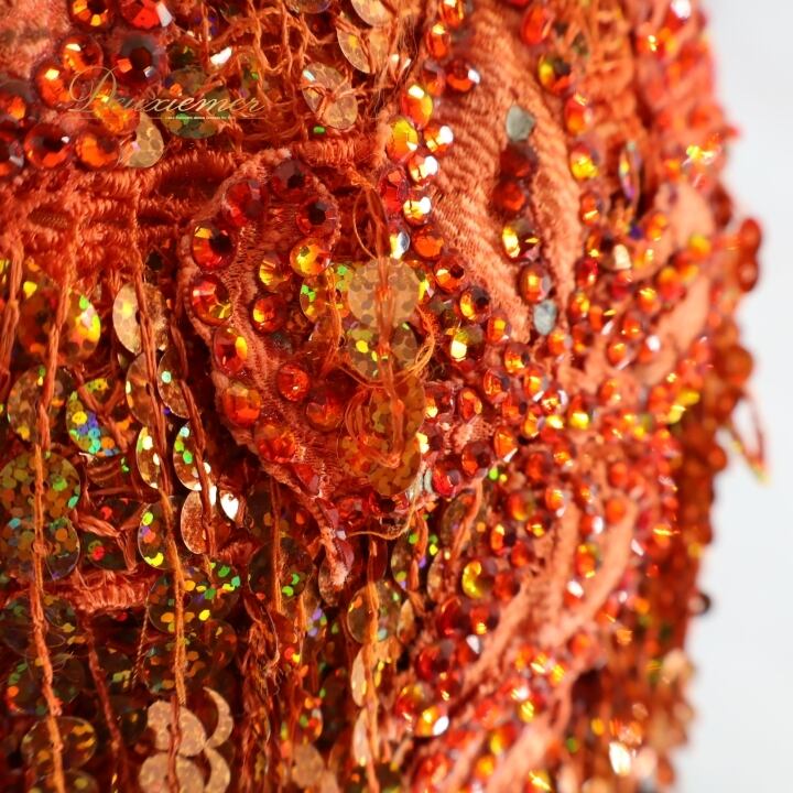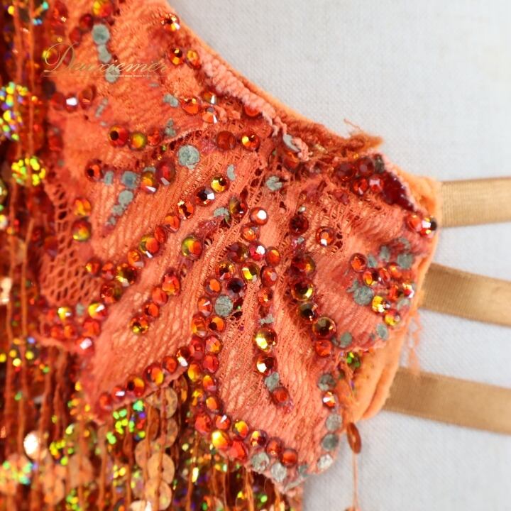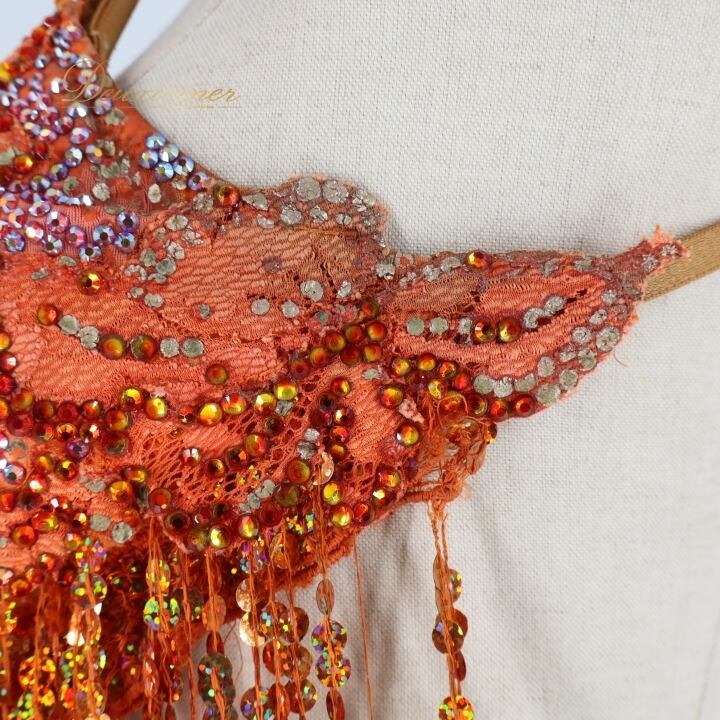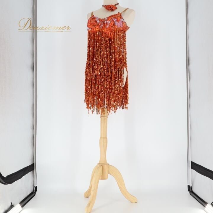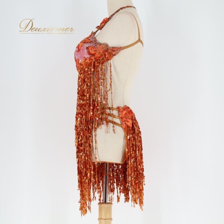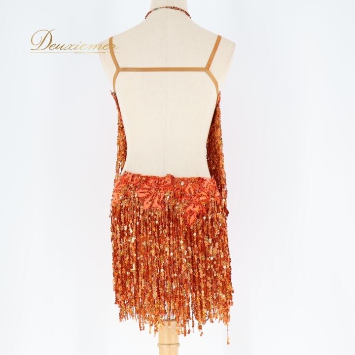 社交ダンス 衣装 ジャンティ gentil ラテン ドレス ワンピース ラテンドレス スパンコール フリンジ 軽い デモ 競技 パーティ 発表会 オレンジ系 ブラウン系 フリンジドレス スパンコールドレス 社交ダンス衣装 ラテン衣装 ダンスパーティ 衣装デモ パフォーマンス