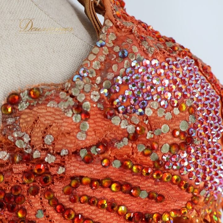 #社交ダンス #ラテンドレス #ダンス衣装 #ワンピース #Sサイズ #ファッション #オレンジブラウン #軽い素材 #動きやすい #レオタード #伸縮性 #胸パッド #ポリエステル #ナイロン #ポリウレタン #ダンスパフォーマンス #エレガント #女性用 #トルソー #ENUTSU