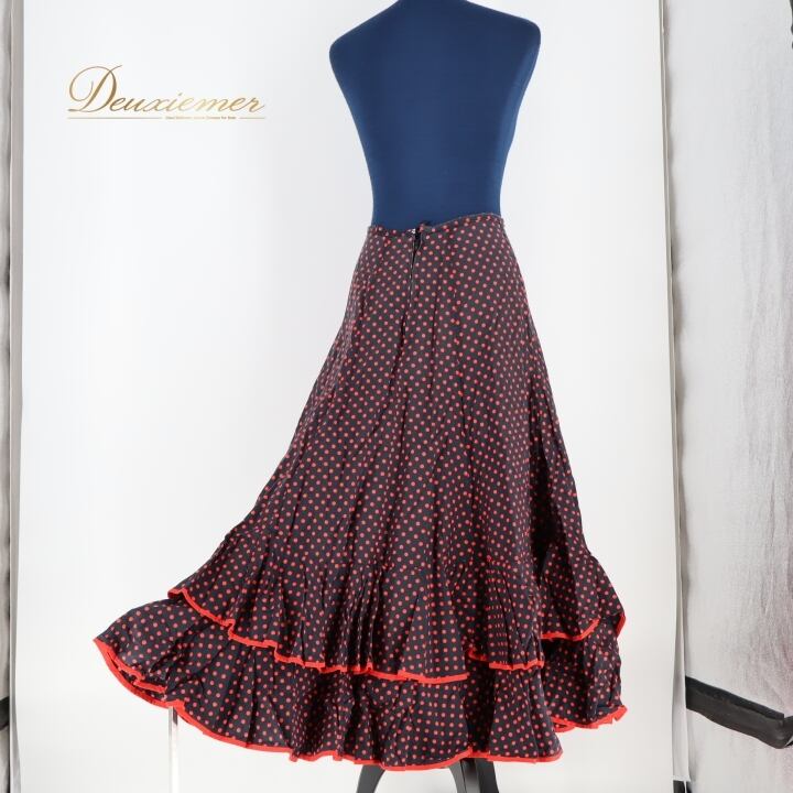 フラメンコ 衣装 ファルダ スカート 黒 赤 ドット 水玉 ボランテ フリル ダンス パーティ 発表会 ブラック系 レッド系 フリルスカート 踊り衣装 レディース おしゃれ パーティー用 発表会用 ダンス用