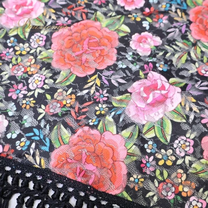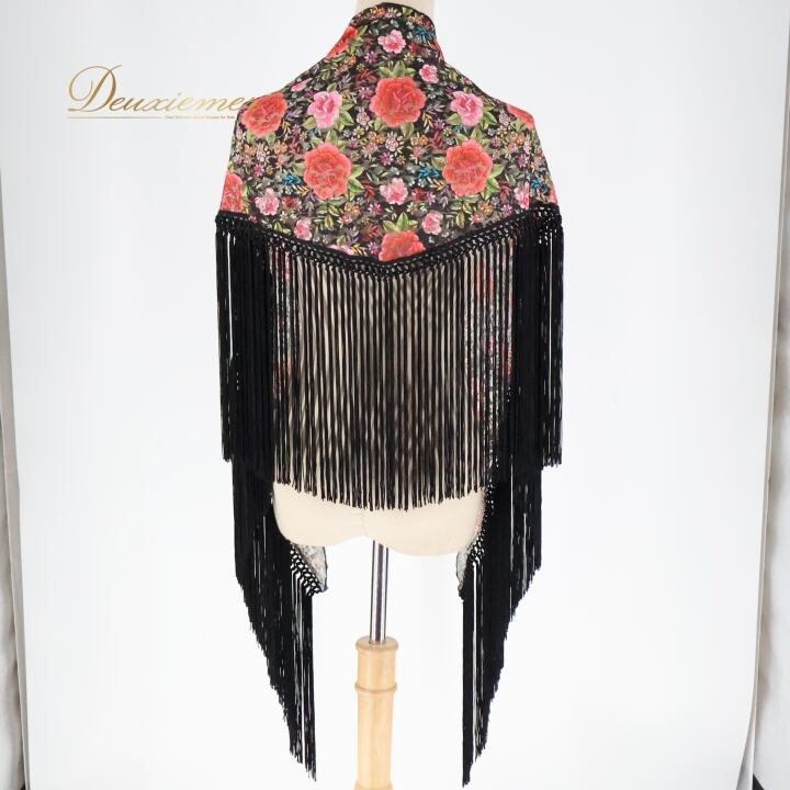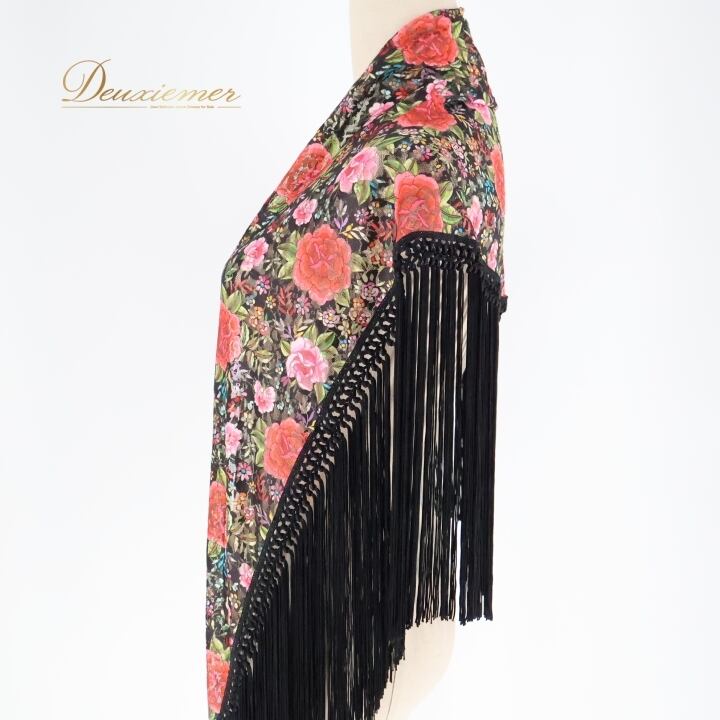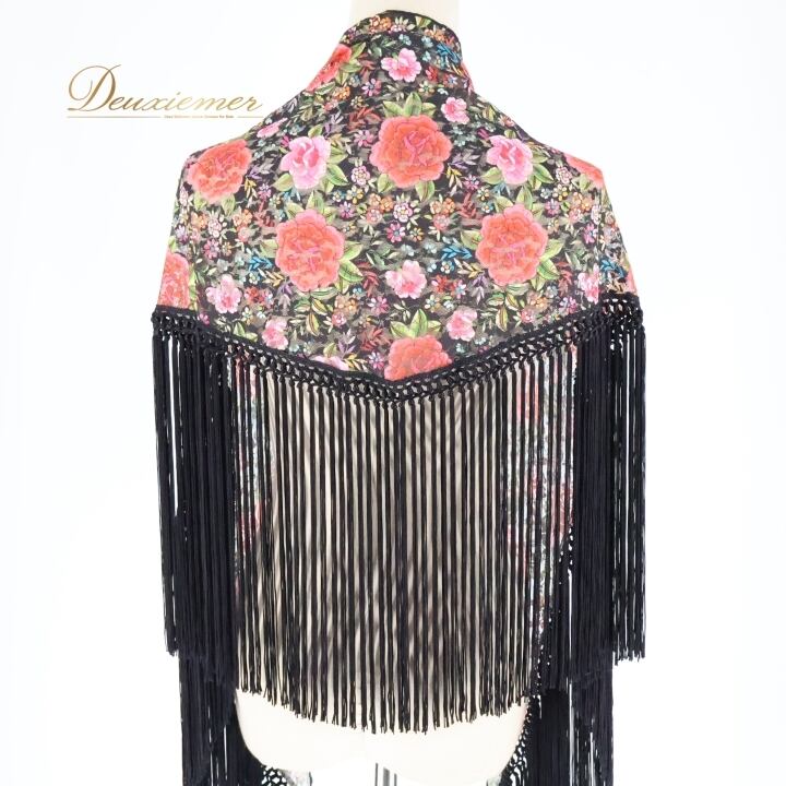 フラメンコ 衣装 シージョ ピキージョ 小物 ブラック系 黒 ピンク系 花柄 カラフル トライアングル フレコ ダンス 三角形 装飾 練習 舞台 花模様 フリンジコート イベント衣装 ダンス小物 ステージ用 フラメンコ小物 アクセサリー 練習用 コスチューム