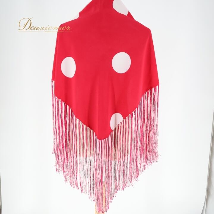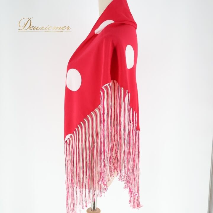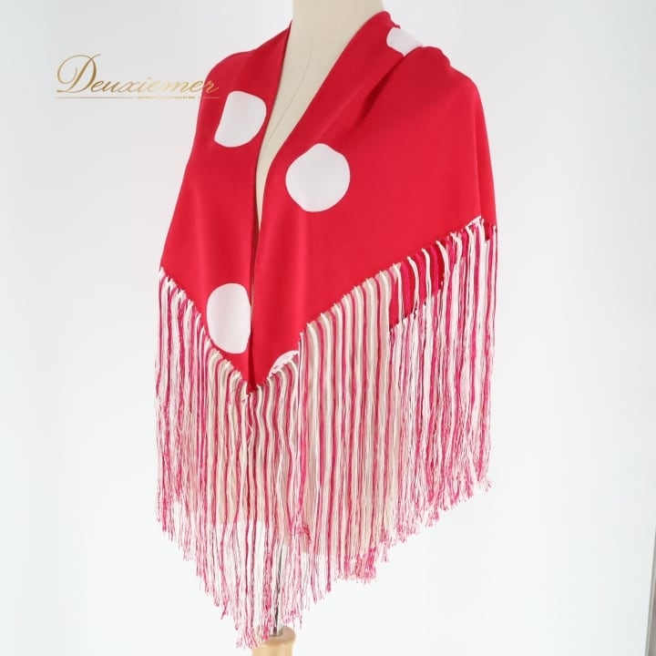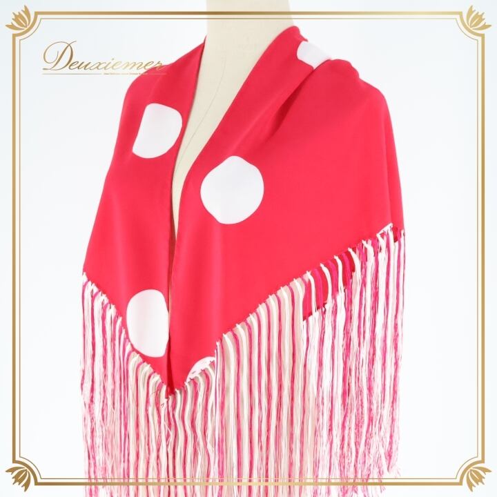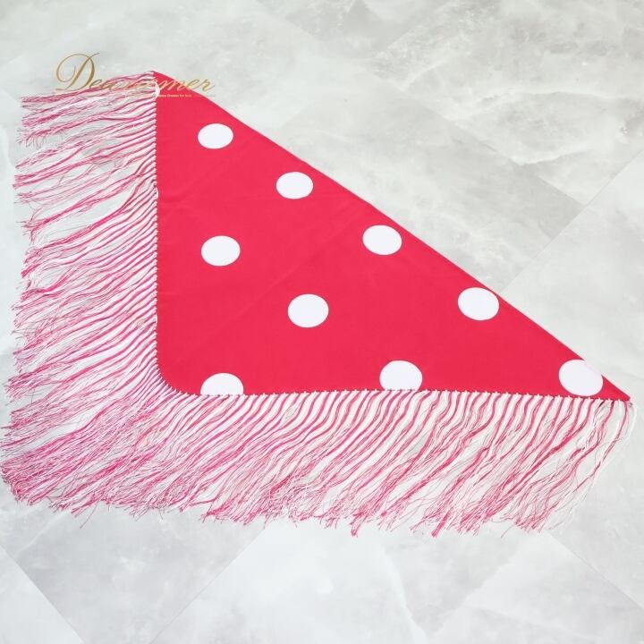 フラメンコ 衣装 シージョ ピキージョ 小物 ピンク系 ショッキングピンク ホワイト系 白 水玉 模様 トライアングル フレコ ダンス 三角形 舞台 ダンス衣装 フラメンコ小物 発表会 イベント用 可愛い フリンジ スカーフ おしゃれ 舞台衣装 柄物