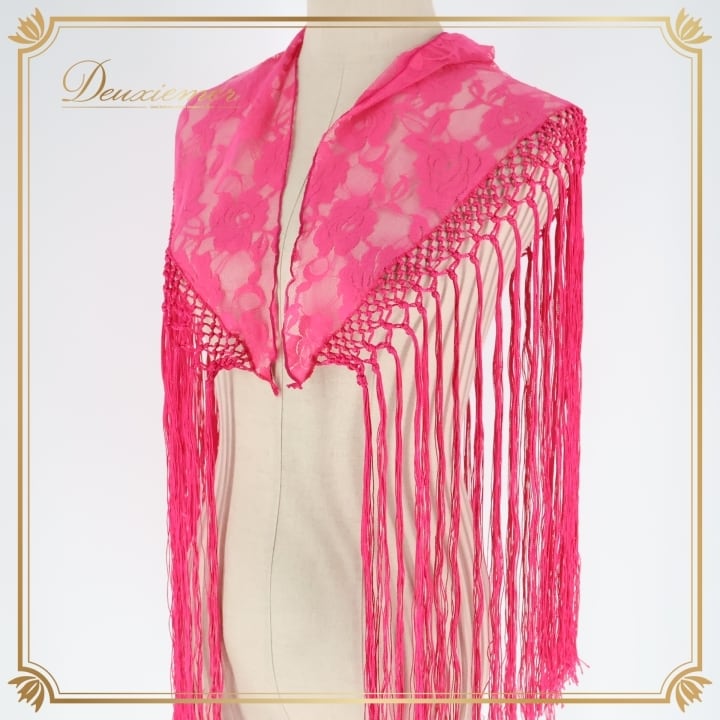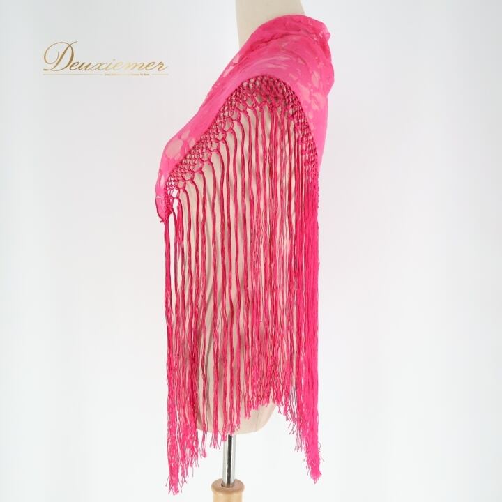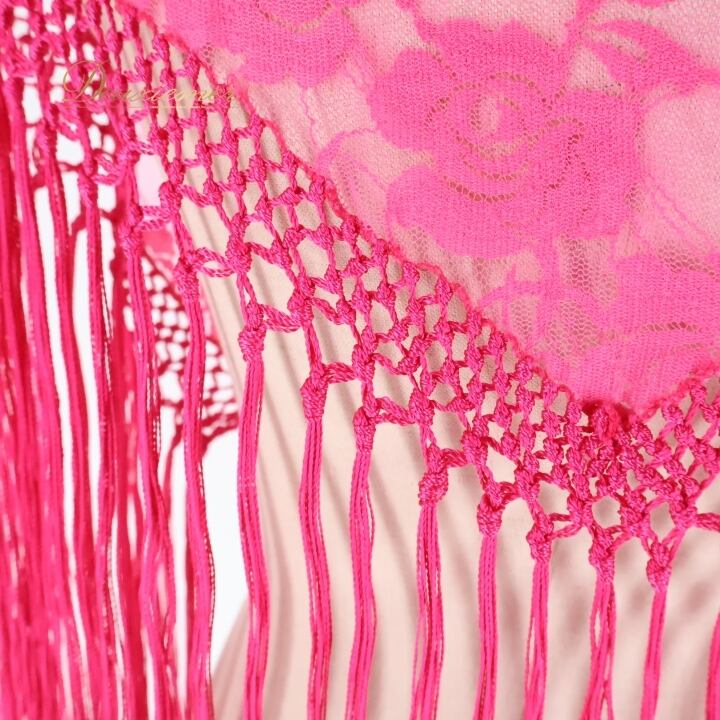 フラメンコ 衣装 シージョ ピキージョ 小物 ピンク系 花柄 レース トライアングル フレコ ダンス 三角形 アクセサリー 練習 舞台 発表会 ピンク フリンジ ショール フラメンコダンス 可愛い ファッション 小物 鮮やか おしゃれ イベント用 ステージ衣装