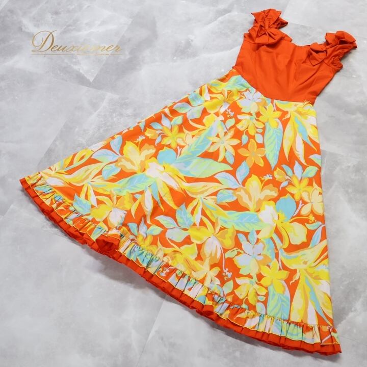 #フラダンス #衣装 #ワンピース #ドレス #ALOHA #アロハスタンダード #日本製 #花柄 #カラフル #オレンジ #女性用 #ファッション #ダンス #フラ #ダンス衣装 #ビーチスタイル #夏コーデ #セレブスタイル #お祭り #AVAILABILITY #ENUTSU