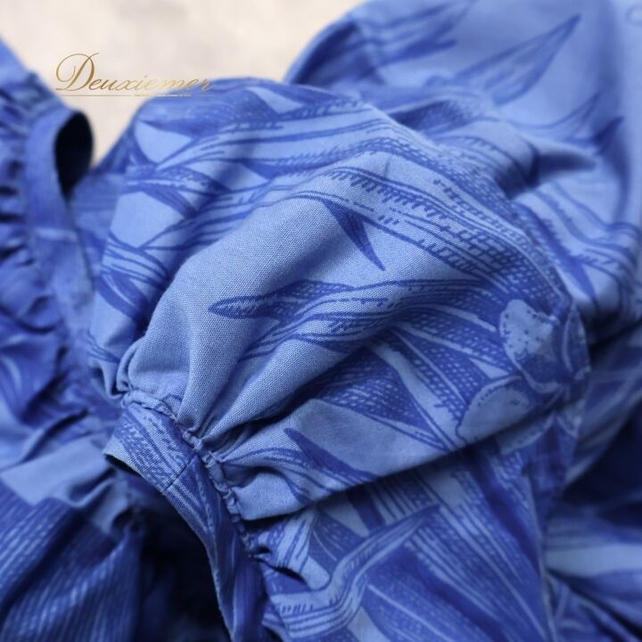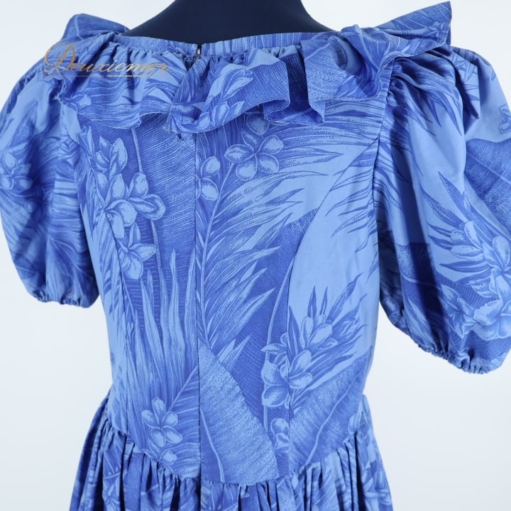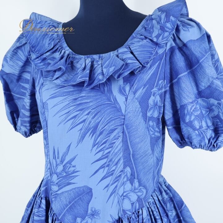 #フラダンス #フラダンス衣装 #ドレス #ワンピース #ブライダル #プルメリア #ヤシ柄 #ビーチファッション #カジュアルファッション #レディースファッション #鮮やかなブルー #フリル #トロピカル #ハワイアン #夏のコーデ #ダンス衣装 #パーティーファッション #アロハ #リゾートスタイル #ENUTSU