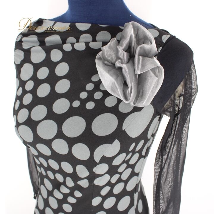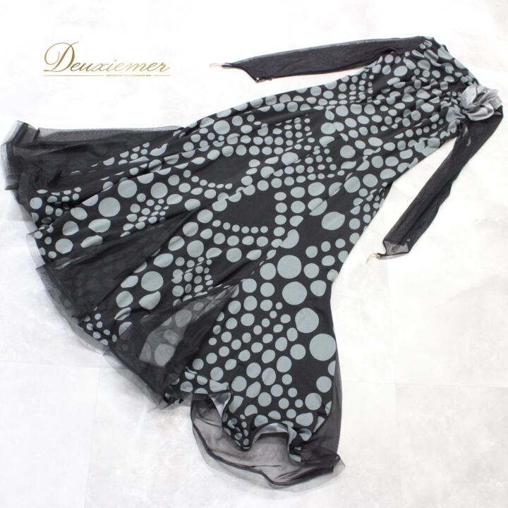 #社交ダンス #ダンス衣装 #ドレス #Mサイズ #日本製 #ファスナー仕様 #伸縮性 #ブラックグレー #マルチドット #コサージュ #トルソー #ダンスファッション #スタイル #シンプル #エレガント #パーティー #発表会 #ダンスイベント #おしゃれ #ENUTSU
