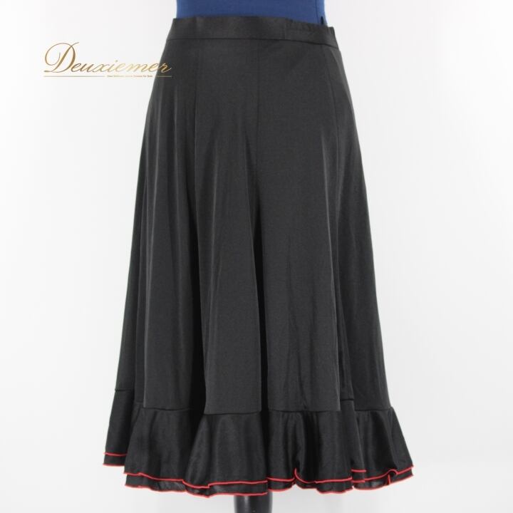 社交ダンス 衣装 スタンダード スカート レッスンウェア 女性用 レディース オールシーズン 赤 黒 ブラック系 レッド系 無地 シンプル バイカラー ポリエステル ナイロン ファスナー 伸縮性 信頼 日本製 おしゃれ ダンス用 スポーツウェア コスチューム