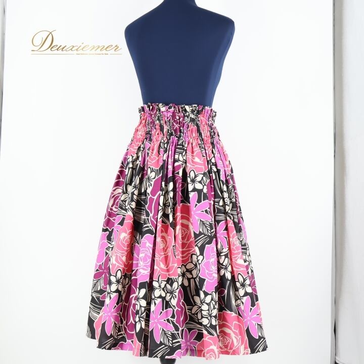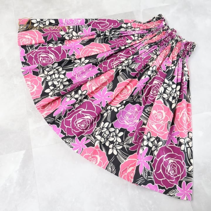 フラダンス 衣装 パウスカート ブラック系 パープル系 ハレハワイイ シングル フラ ダンス プルメリア柄 ティアレ柄 ロケラニ柄 黒 白 紫 華やか 日本製 ハワイアン アロハ かわいい 花柄 鮮やか 派手 目立つ レッスン 練習 ホワイト系 ピンク系
