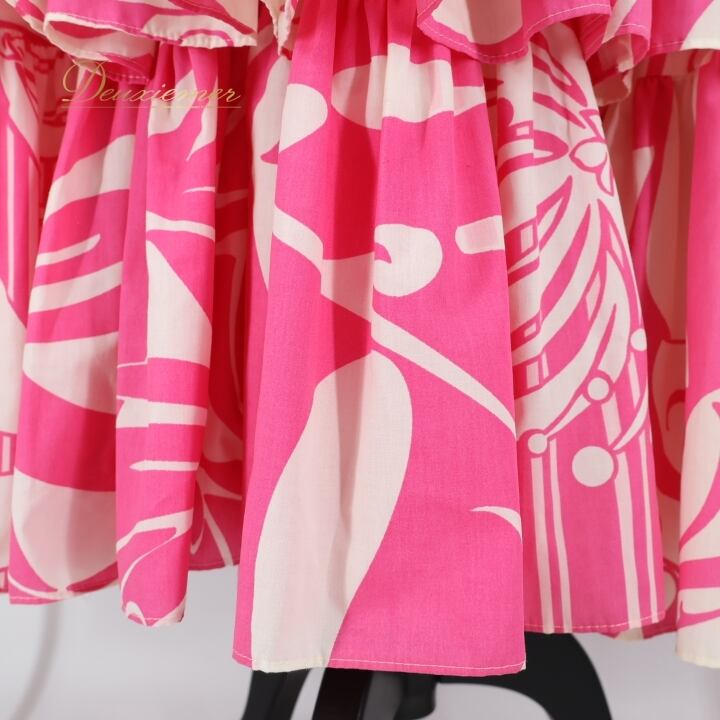 #フラダンス #フラドレス #ワンピース #ハワイ製 #花柄 #ピンクホワイト #フリルドレス #コットン #ポリエステル #伸縮性無し #女性用トルソー #ダンス衣装 #フラダンス衣装 #かわいい #ボリューム感 #華やか #コスチューム #ポジティブ #ステージ衣装 #サマーコレクション #ENUTSU
