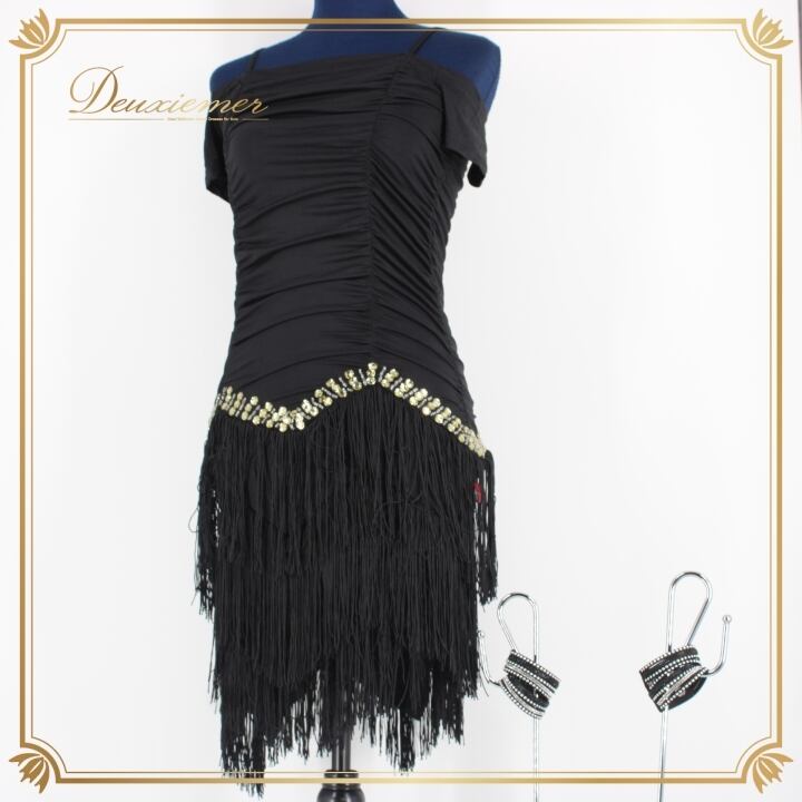 社交ダンス 衣装 ラテン ドレス ワンピース パーティ衣装 女性用 レディース オールシーズン 琳奈美 黒 ブラック系 フリンジ ラインストーン ビジュー アクティブウェア パフォーマンスウェア ダンス衣装 着こなし フェスティバル ステージ衣装