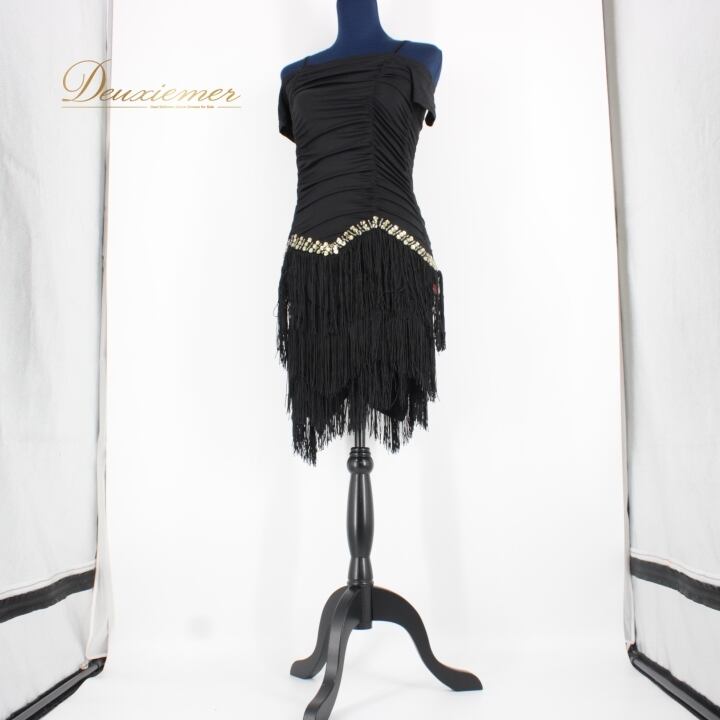 #社交ダンス #ダンスドレス #Lサイズ #モノトーン #フリンジ #ラインストーン #ビジュー #おしゃれ #ダンス衣装 #女性用 #フォーマル #特別な日 #ダンスパフォーマンス #衣装レンタル #パーティー #イベント #ダンスファッション #魅力的 #スタイリッシュ #ENUTSU