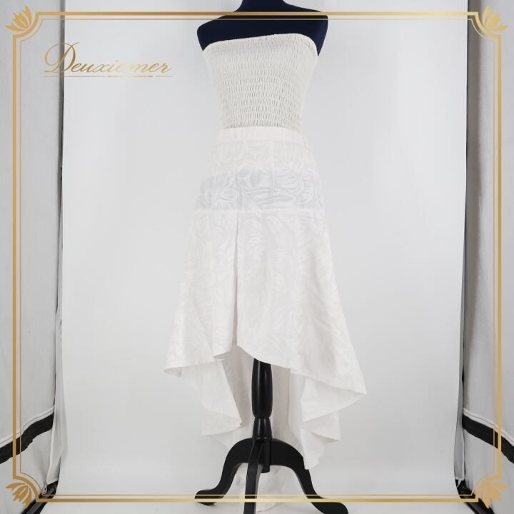 フラダンス 衣装 ツーピース セットアップ 上下セット ホワイト系 アロハスタンダード 白 プルメリア柄 ラウアエ柄 レフア柄 華やか トップス スカート かわいい ALOHA STANDARDS 爽やか ハワイアン アロハ ハワイアンプリント