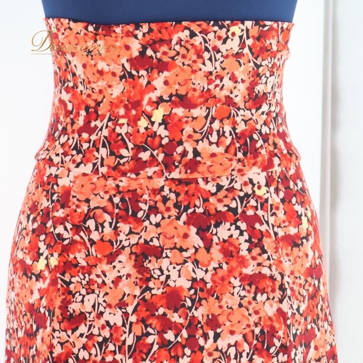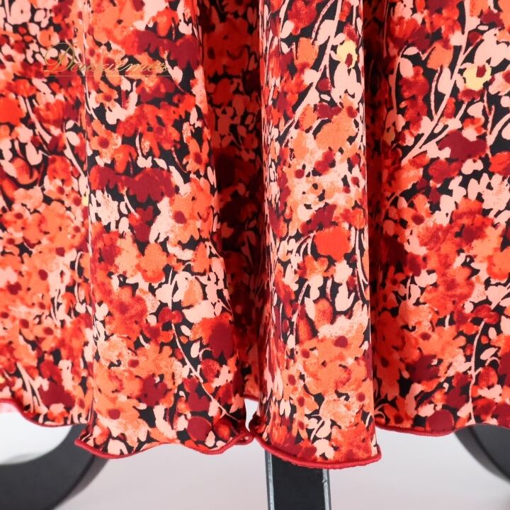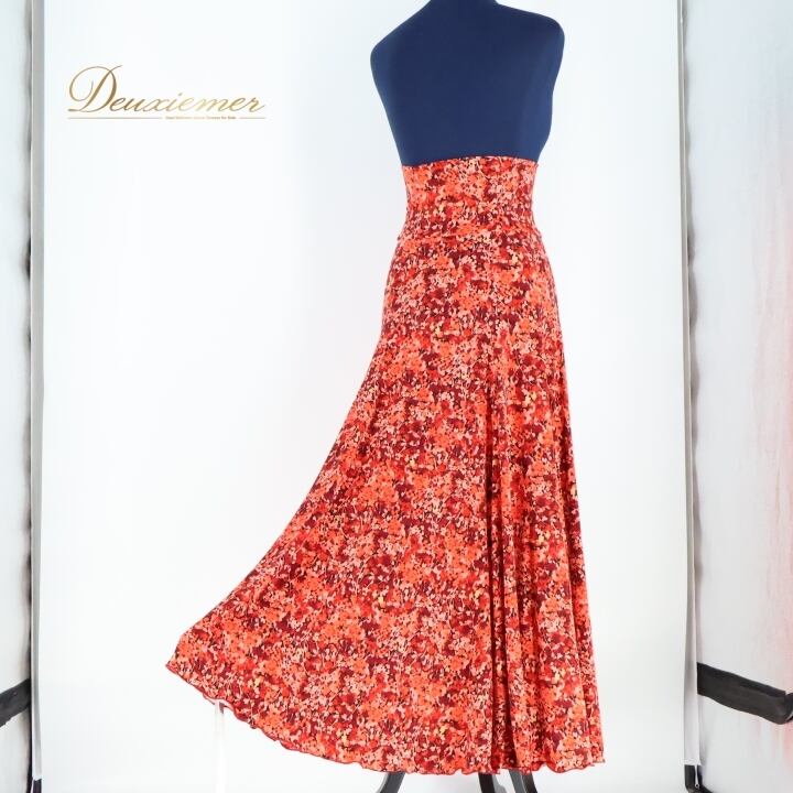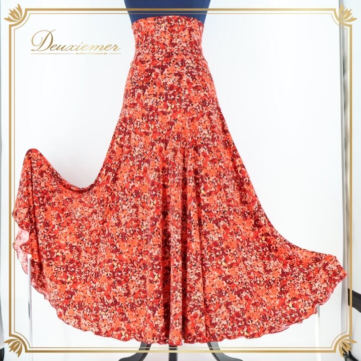 フラメンコ 衣装 ファルダ スカート 柄 模様 ハイウエスト 伸縮 ストレッチ 薄い 柔らかい レッド系 ピンク系 おしゃれ ダンス 踊り カジュアル スカート 動きやすい かわいい レディース Mサイズ フラメンコ用 衣装用 薄手 軽い 伸縮素材