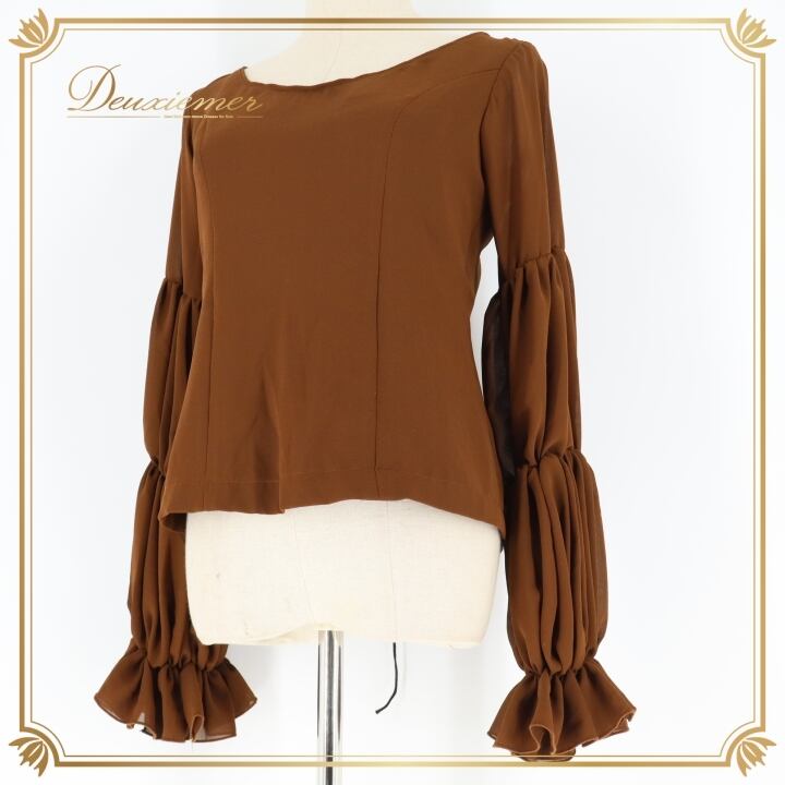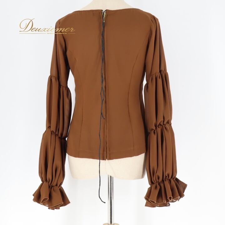#フラメンコ #衣装 #ブラウス #トップス #ダンス衣装 #ファッション #フラメンコ衣装 #おしゃれ #透け感 #茶色 #サイズM #背面ファスナー #袖絞り #女性用 #ダンス #コスチューム #パフォーマンス #フラメンコダンス #ドセデルフラメンコ #ENUTSU