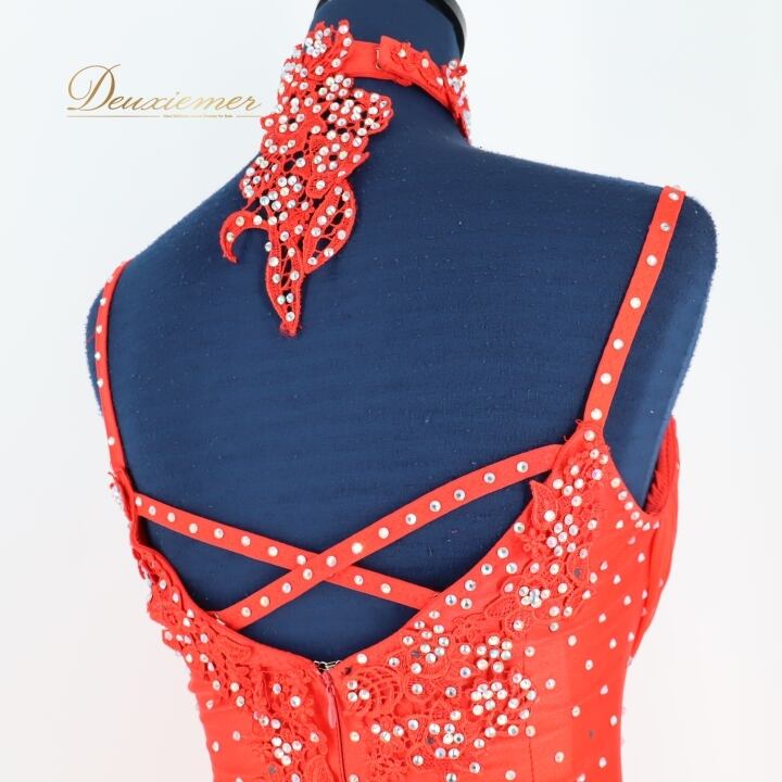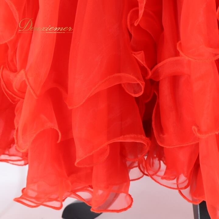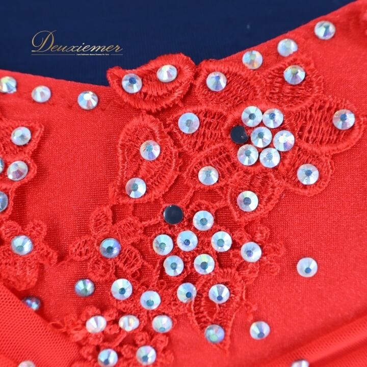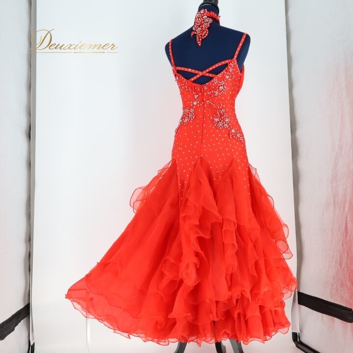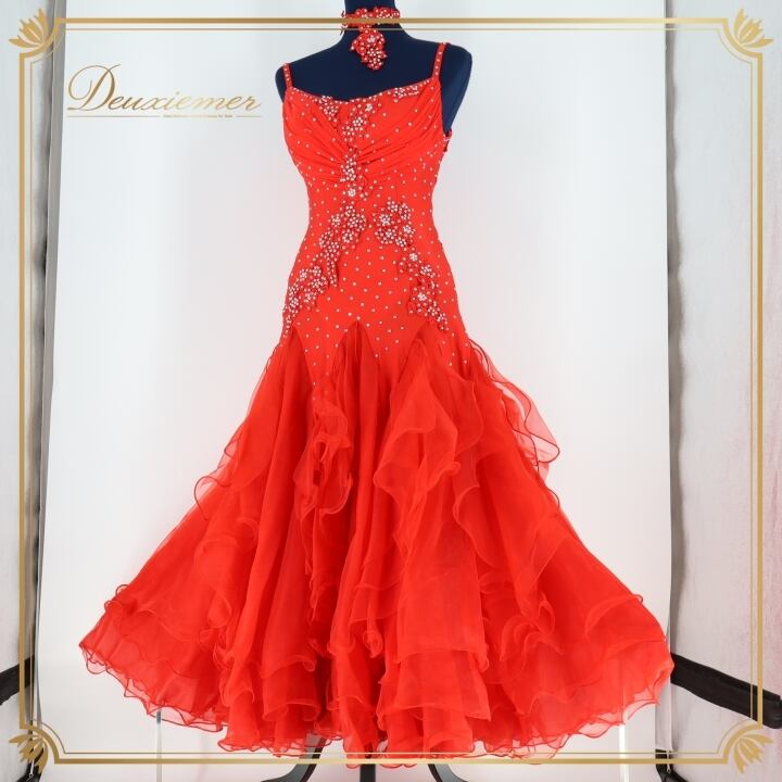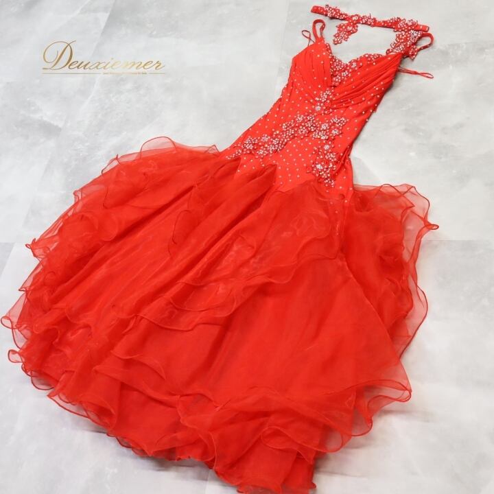 社交ダンス 衣装 スタンダード ドレス ワンピース スタンダードドレス 赤 フリル パーティ 発表会 デモ レース レッド系 フレア スカート ダンスパーティ おしゃれ 発表 会場用 演出用 かわいい ふんわり レディース Mサイズ パーティー衣装 ドレッシー 競技 ダンス衣装