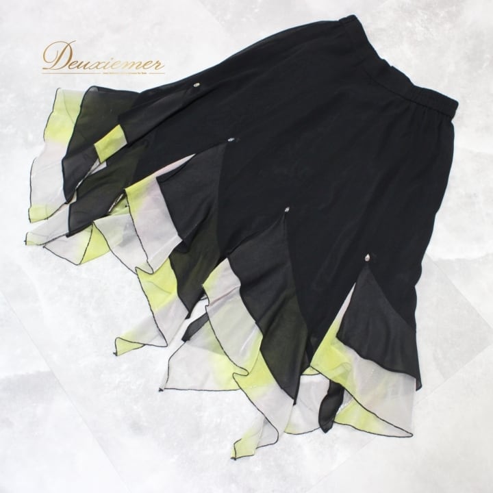 #社交ダンス #ダンス衣装 #スカート #日本製 #ハチロー #ファスナー付き #伸縮性 #ブラックイエロー #ポリエステル #ナイロン #ダンスファッション #女性用トルソー #トルソー #ダンススタイル #ダンスルック #ダンス用品 #社交ダンススカート #コスチューム #ウエスト30cm #社交ダンスファッション #ENUTSU