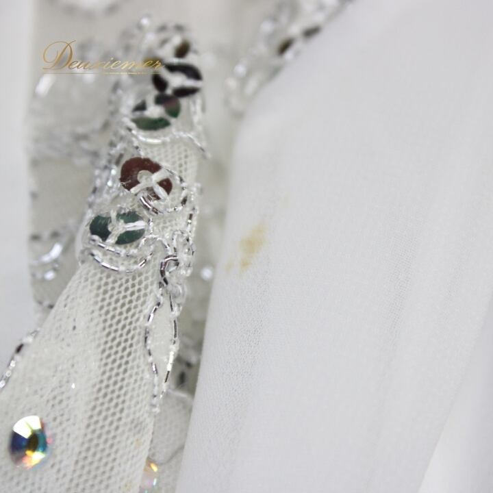 社交ダンス 衣装 スタンダード ドレス ワンピース パーティ衣装 女性用 レディース オールシーズン 白 ホワイト系 スパンコール フロート 派手 華やか レース ラインストーン 華やかさ ドレスアップ 打ち合わせ パフォーマンス ステージ 衣装優雅