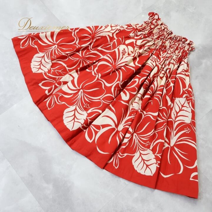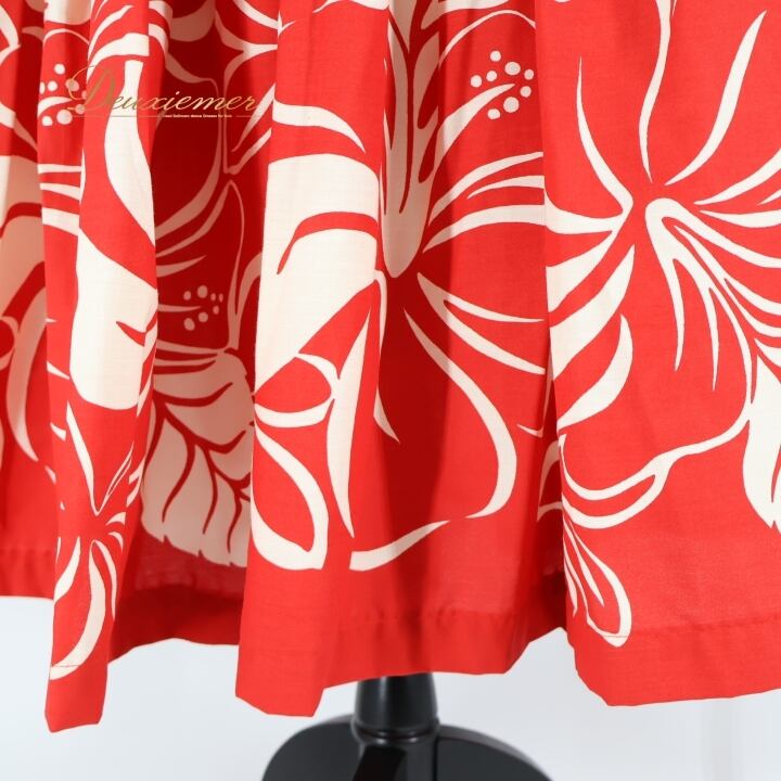 フラダンス 衣装 パウスカート レッド系 シングル フラ ダンス ハイビスカス柄 ハワイアン アロハ 華やか 赤 白 鮮やか 花柄 かわいい スカート フラワー ハワイアンプリント ホワイト系