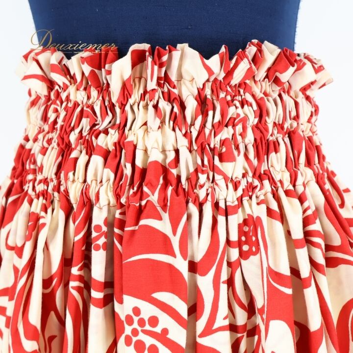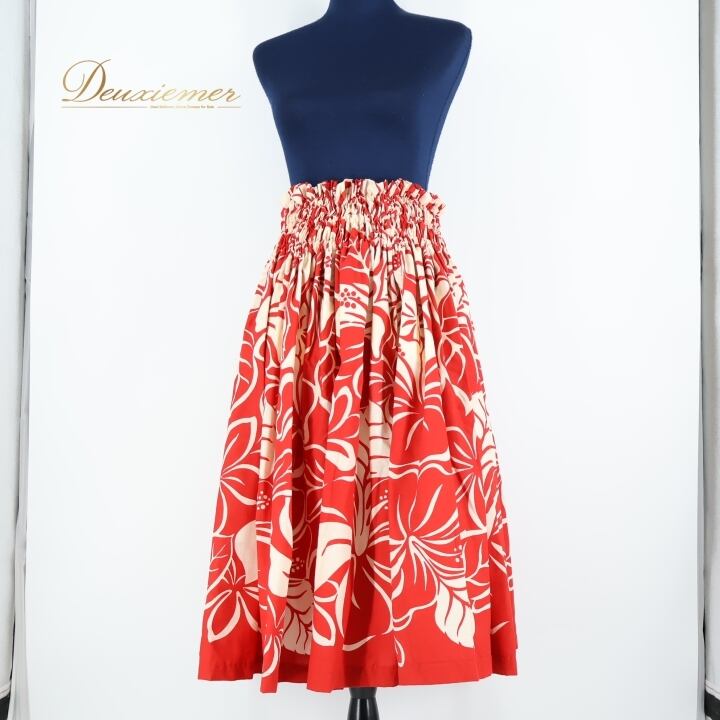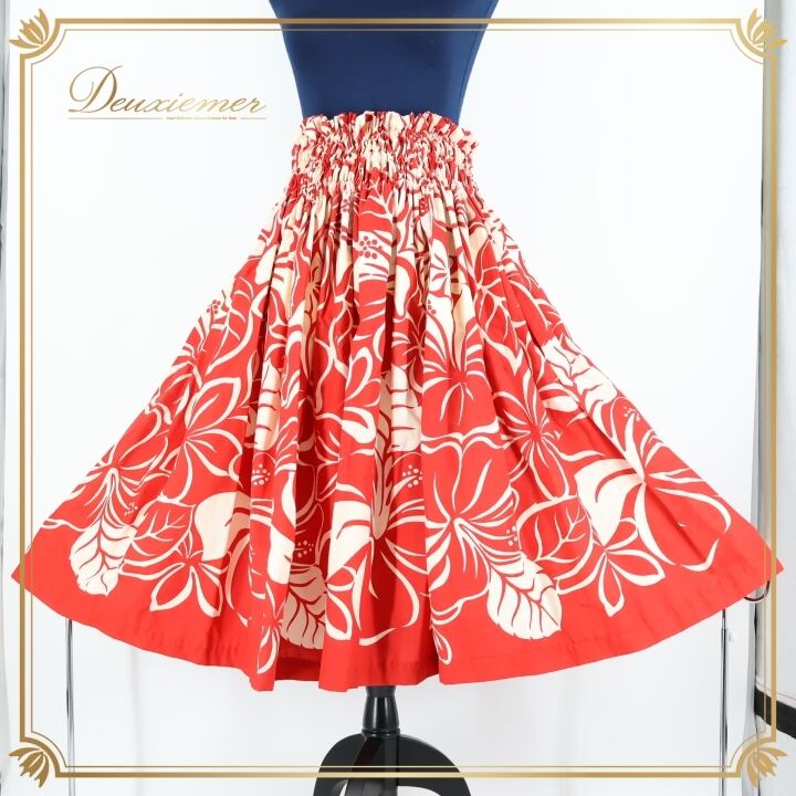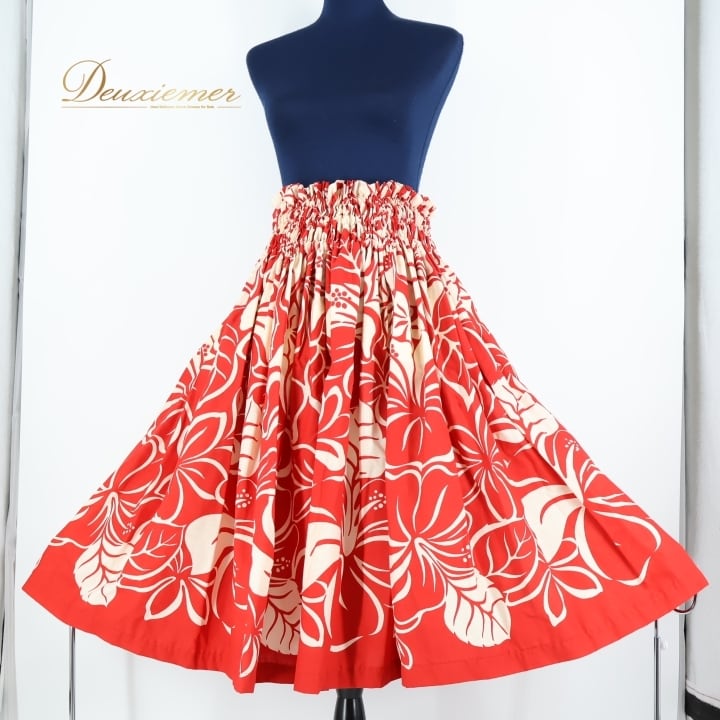 #フラダンス #フラダンス衣装 #パウスカート #レッドホワイト #花柄 #ハワイアン #ダンス衣装 #エスニックファッション #ウエストゴム #華やか #女性用トルソー #フラワープリント #カラフル #夏スタイル #リゾートファッション #ダンスパフォーマンス #楽器 #フラ #フラスタイル #ENUTSU