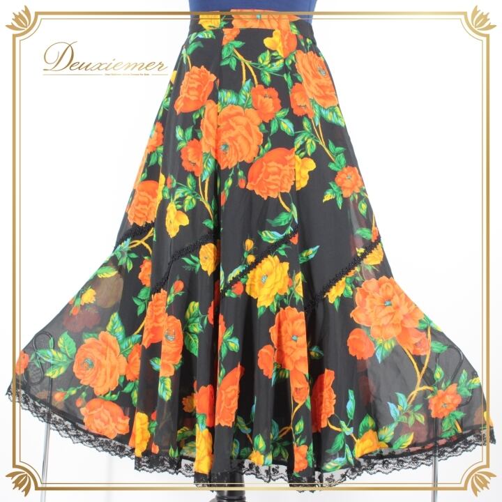 #社交ダンス #ダンス衣装 #ダンススカート #ファッション #フェミニン #花柄 #レース #日本製 #ブラックオレンジグリーン #ダンスパフォーマンス #ステージ衣装 #トルソー #ウエスト #伸縮性 #ダンススタイル #エレガント #ダンスコスチューム #社交ダンス衣装 #クインスター #ENUTSU