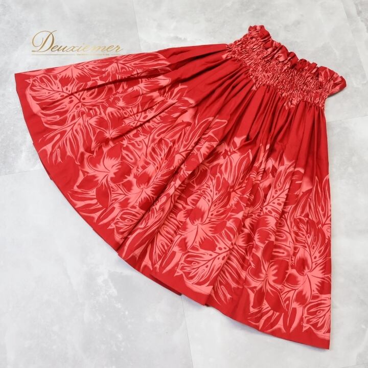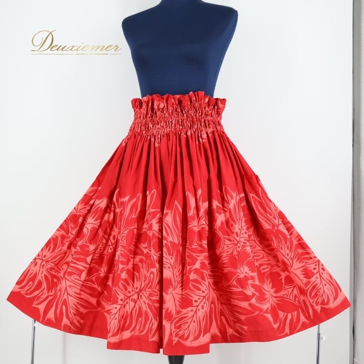 #フラダンス衣装 #パウスカート #モンステラ #プルメリア #ラウアエ #ハワイアンファッション #フラダンス #ダンス衣装 #ウエストゴム #鮮やかなレッド #夏のコーデ #トルソー #女性用 #フラガール #リゾートスタイル #ハワイイベント #エスニックファッション #ウエストサイズ #ダンスパフォーマンス #ENUTSU