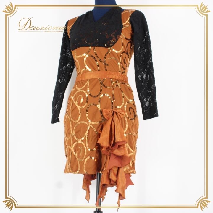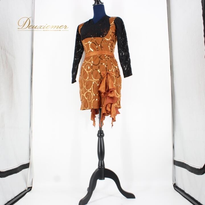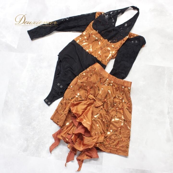 #社交ダンス #ダンス衣装 #ダンスファッション #レオタード #スカート #セットアップ #日本製 #スカーレット #スパンコール #伸縮性 #Mサイズ #女性用 #ダンスコレクション #ブラウン #ブラック #ファスナー仕様 #トルソー #ダンスウェア #イベント衣装 #パーティードレス #ENUTSU