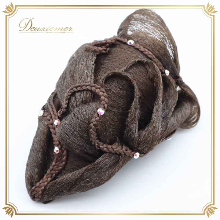 社交ダンス 小物 多美咲 タミショウ シニヨン カップ つけ毛 つけ髪 コーム 団子 ダンス パーティ 発表会 ブラウン系 ブラック系 茶色 三つ編み デモ 競技 パーティー ヘアアクセサリー 髪型 おしゃれ デモンストレーション 大人用 女性用 コーム付き ダンス衣装