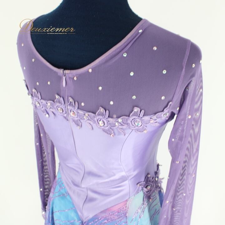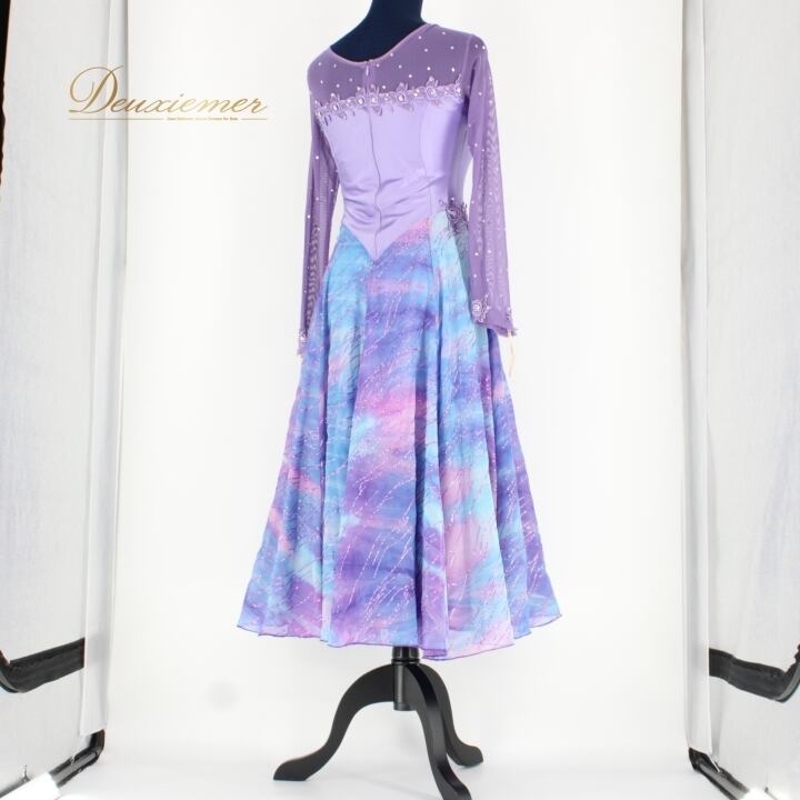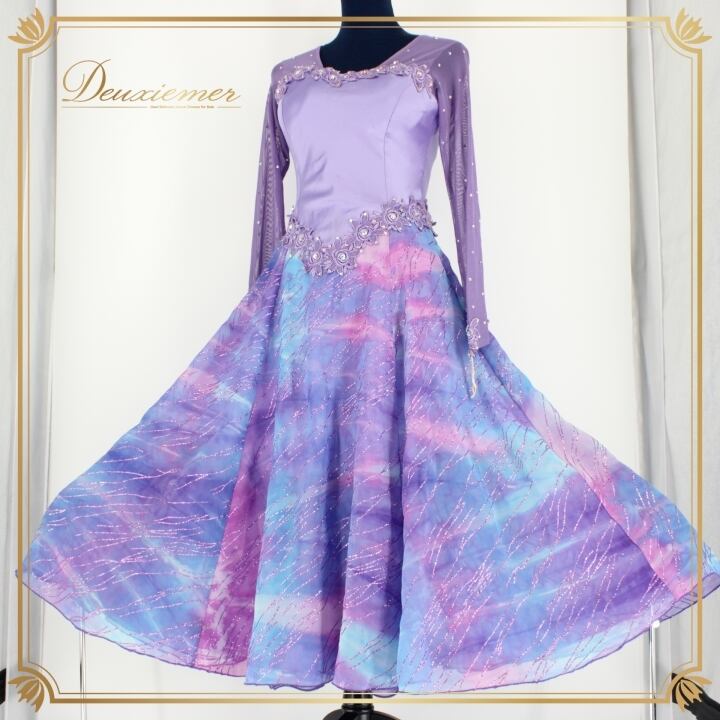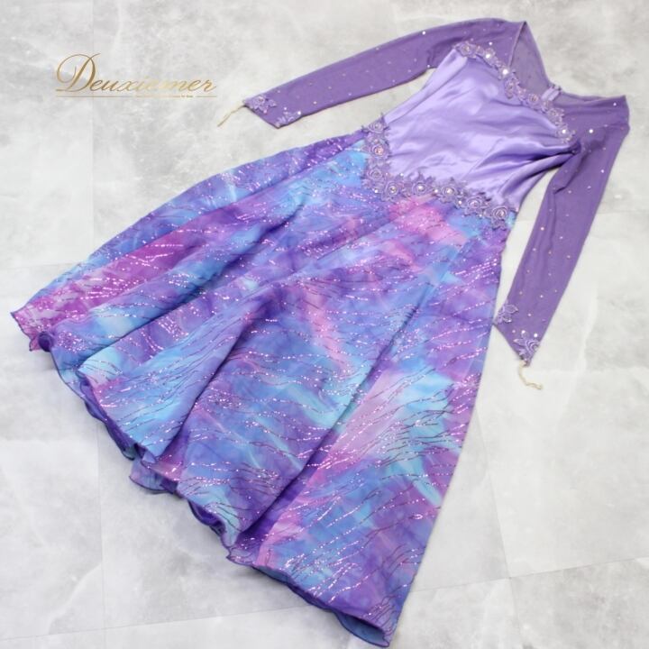 #社交ダンス #ダンスドレス #パープル #ブルー #ラインストーン #二重スカート #ボリュームスカート #優雅な動き #ファスナー #伸縮性 #ダンスファッション #ダンス衣装 #ポリエステル #綿 #女性用トルソー #ダンススタイル #アクティブウェア #特別な日 #おしゃれ #ENUTSU
