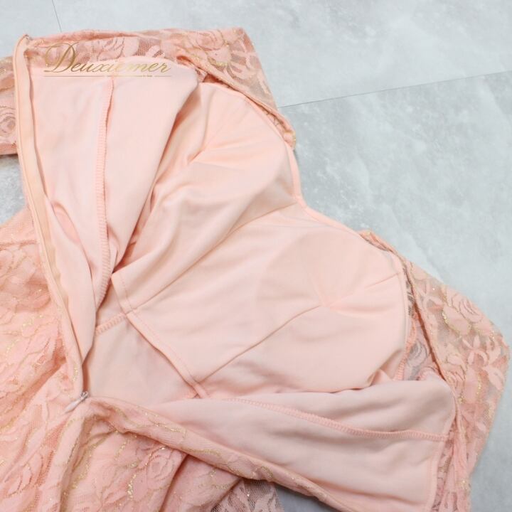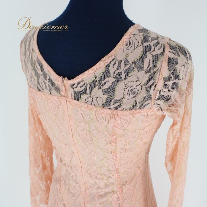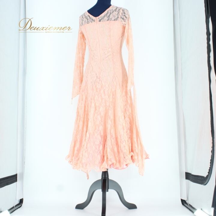 #社交ダンス #ダンス衣装 #ドレス #コーラルピンク #フェミニン #花柄レース #洗練されたデザイン #軽やか #フロート付き #ポリエステル #伸縮性 #女性用 #ダンス #ファッション #おしゃれ #スタイル #トルソー #サイズ #イベント #ENUTSU