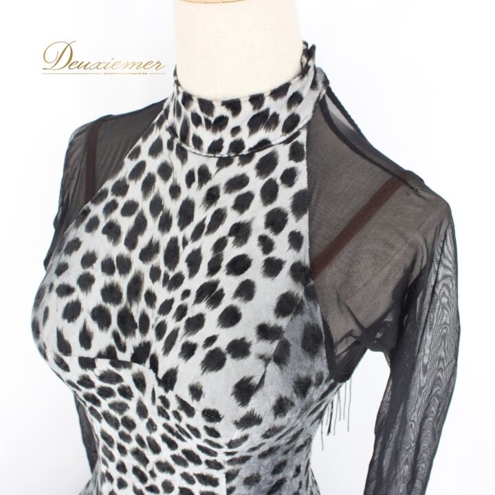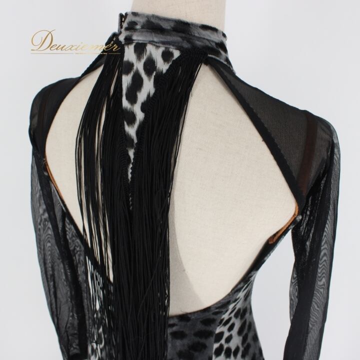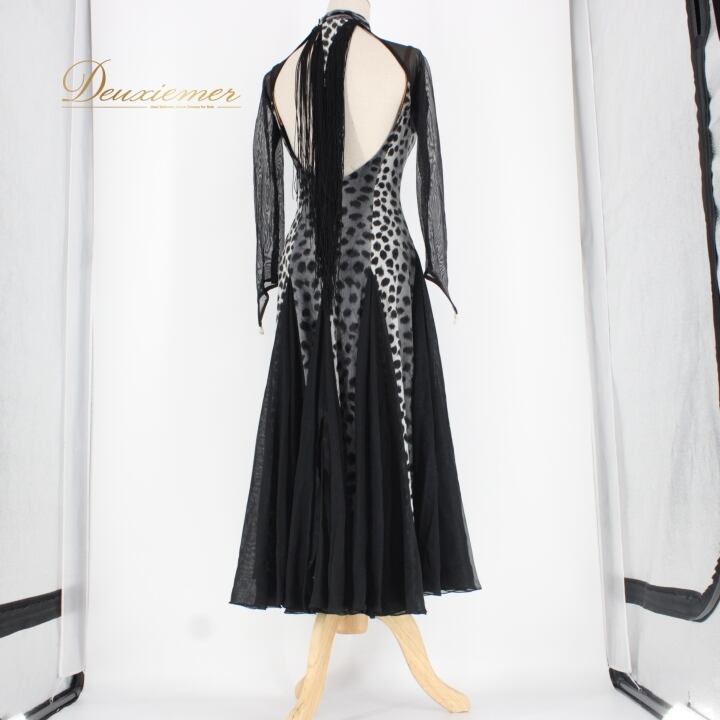 #社交ダンス #ダンス衣装 #ダンスドレス #日本製 #ヒョウ柄 #ブラックグレー #レオタード #伸縮性 #ファスナー仕様 #スリット入り #女性用トルソー #高品質 #シック #オーダーメイド #ダンスファッション #ダンススタイル #美しい #エレガント #パフォーマンスウェア #ENUTSU
