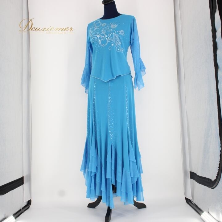 #社交ダンス #ダンス衣装 #ダンスファッション #ラインストーン #セットアップ #レイリーナ #ダンススタイル #ライトブルー #ウエストゴム #ストレッチ素材 #ポリエステル #ポリウレタン #ダンスパフォーマンス #女性用トルソー #ダンスウェア #演技衣装 #フィット感 #トレンド #ダンス愛好者 #ENUTSU