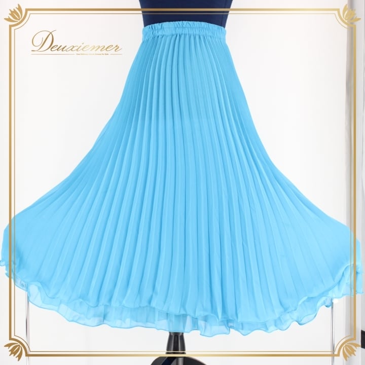 社交ダンス 衣装 スタンダード スカート レッスンウェア 女性用 レディース オールシーズン 水色 ブルー系 プリーツ 無地 シンプル 上品 清楚 デザイン 軽やか おしゃれ 体型カバー 上品さ お手入れ簡単 フィット感 レッスン着 楽器用 太もも 伸縮性