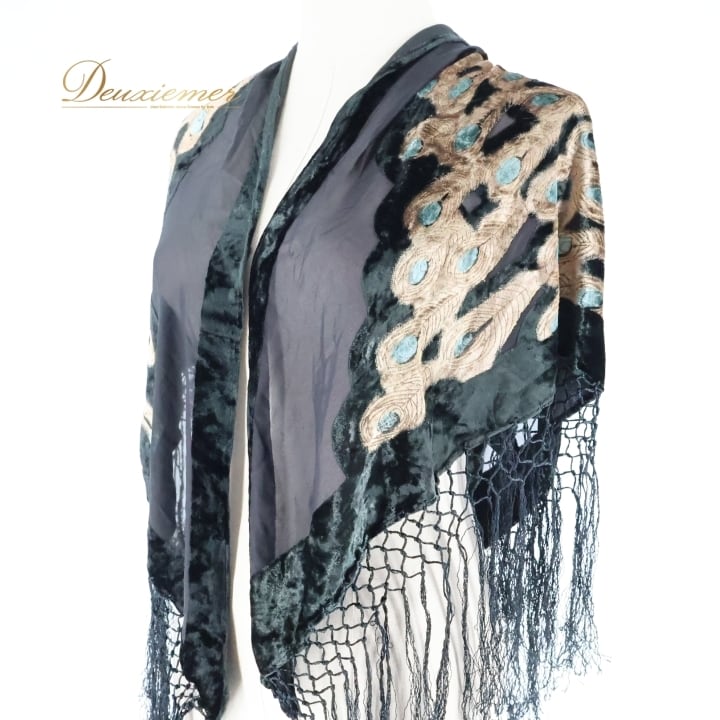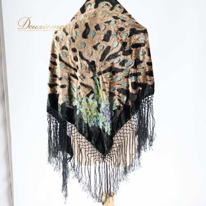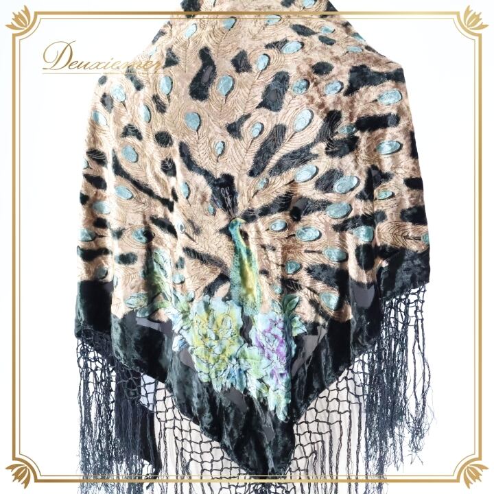 フラメンコ 衣装 シージョ ピキージョ 小物 ブラック系 黒 ベージュ系 ブルー系 水色 孔雀柄 ベロア トライアングル フレコ ダンス 三角形 イベント 孔雀模様 フリンジ付き 練習用 舞台衣装 エレガント デザイン オシャレ アクセサリー