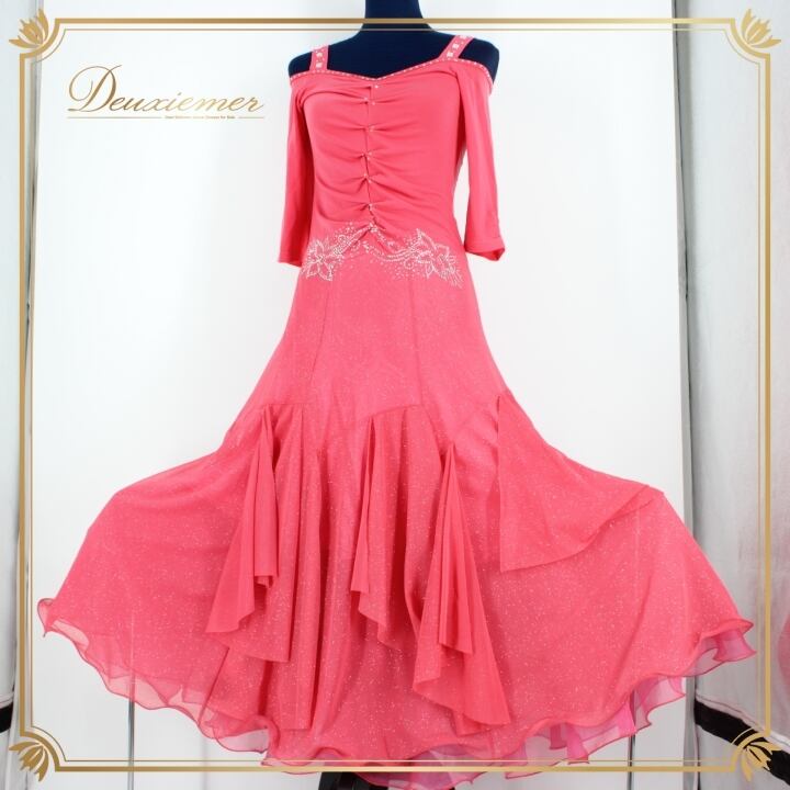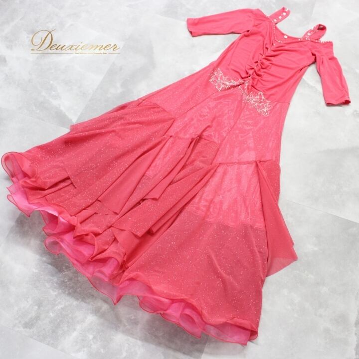 #社交ダンス #ダンスドレス #ダンス衣装 #ピンクドレス #二重スカート #ラインストーン #パーティードレス #舞台衣装 #女性用トルソー #ファッション #スタイル #ダンスファッション #コスチューム #おしゃれ #ダンサー #社会リーダー #特別な日 #エレガント #フリースタイル #ENUTSU