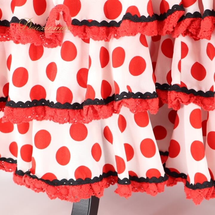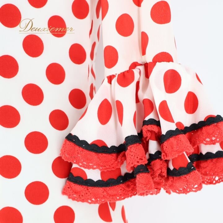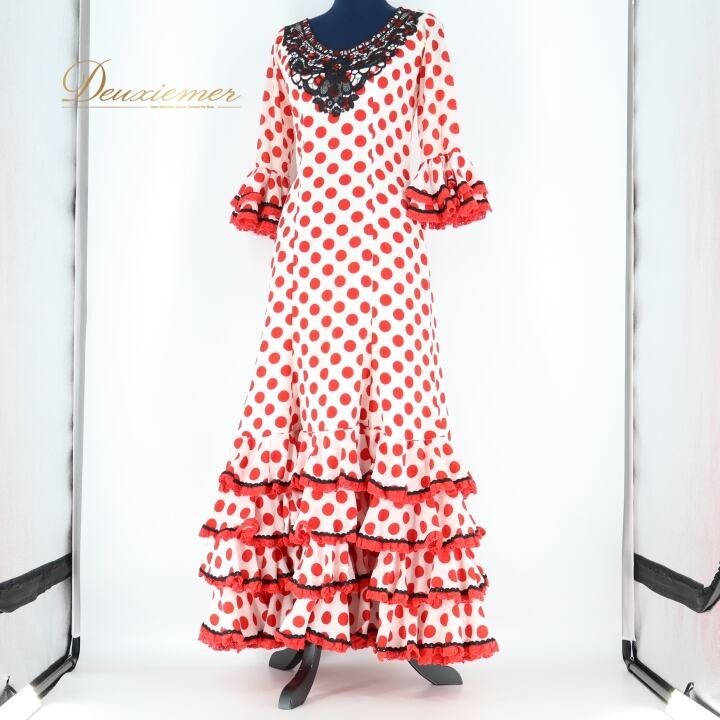 フラメンコ 衣装 ソニアジョーンズ SONIA JOHNES ワンピース ドレス 赤 白 ボランテ フリル 水玉 ドット 黒 レッド系 ホワイト系 フラメンコドレス おしゃれ パーティ 衣装 女性用