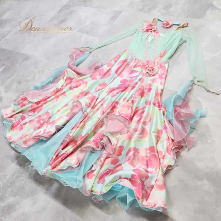 #社交ダンス #ダンス衣装 #ワンピース #ドレス #ミントカラー #花柄 #日本製 #SEKINE #おしゃれ #ダンスファッション #女性用 #スタイル #フォーマル #レッスン着 #特別な日 #可愛い服 #ダンススタイル #ドレスアップ #バレエ #ENUTSU