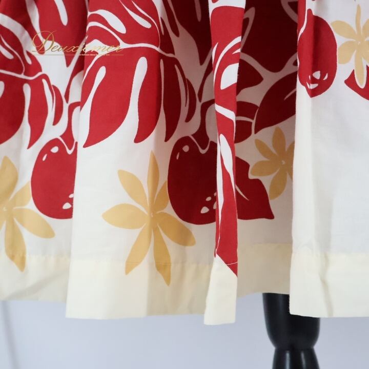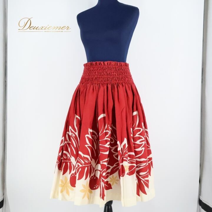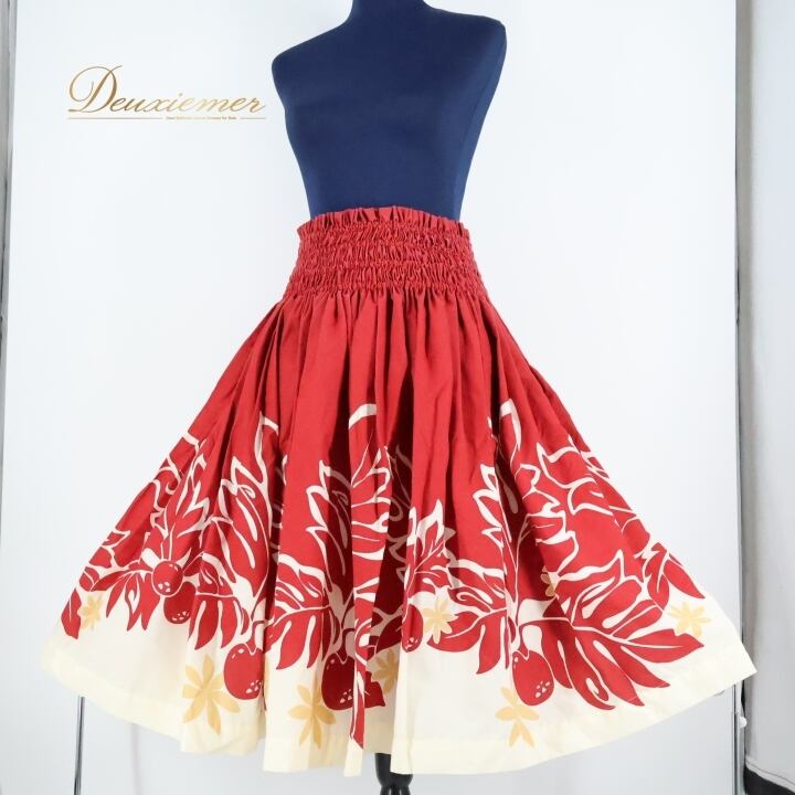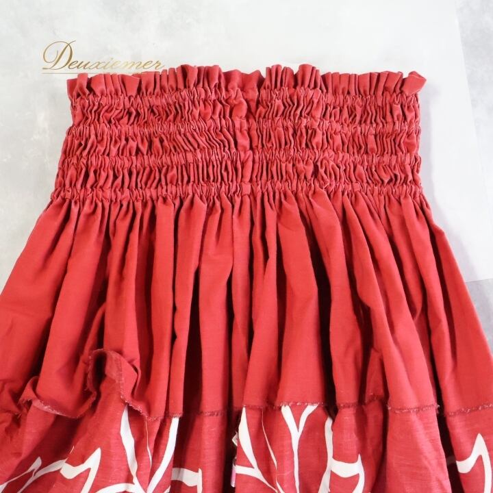 #フラダンス #フラダンス衣装 #パウスカート #ウエストゴム #ティアレ柄 #ラウアエ柄 #日本製 #PUALANI #カラフル衣装 #ダンス衣装 #女性用トルソー #ハワイアンファッション #エスニックスタイル #ポリエステル #綿混 #フラ衣装 #ダンスパフォーマンス #パウスカートコーディネート #レッドホワイト #ENUTSU