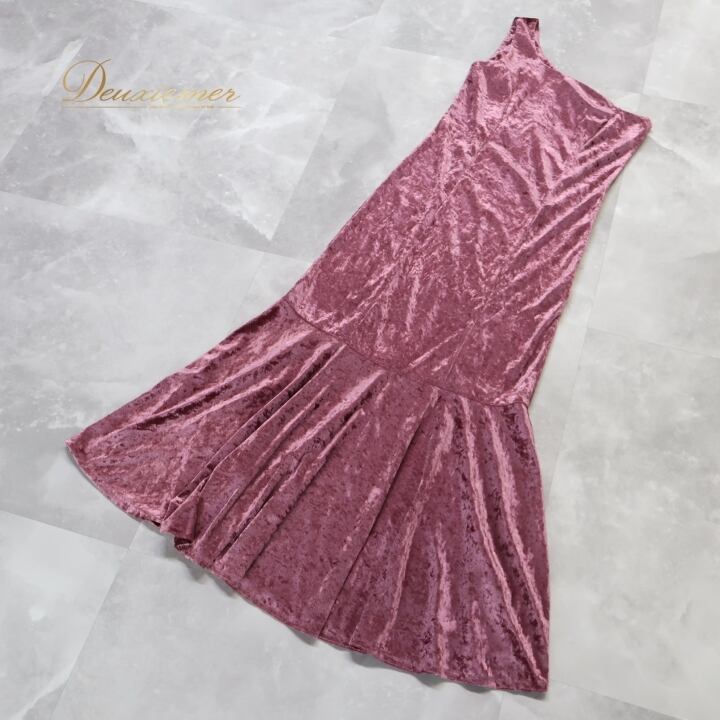 フラダンス 衣装 ワンピース ドレス ピンク系 ALOHA KIKI フラ ダンス 無地 シンプル 光沢 ベロア ワンショルダー 上品 日本製 高級感 華やか 鮮やか ハワイアン アロハ かわいい パープル系