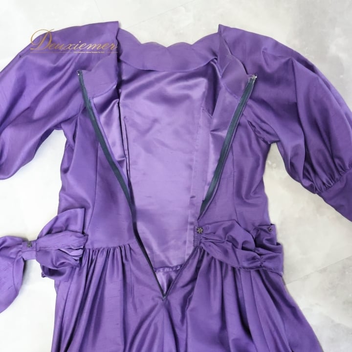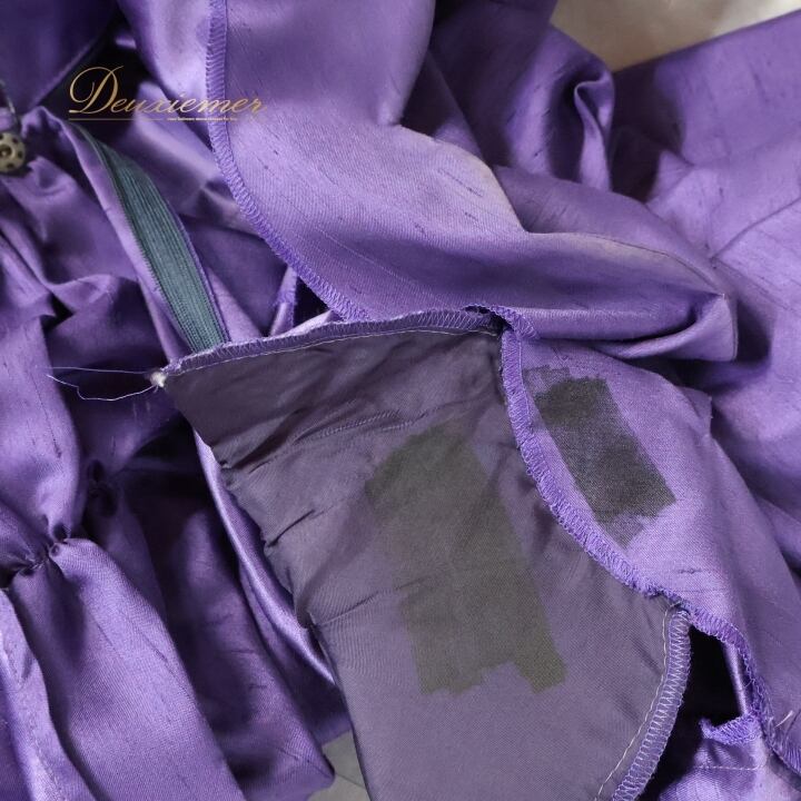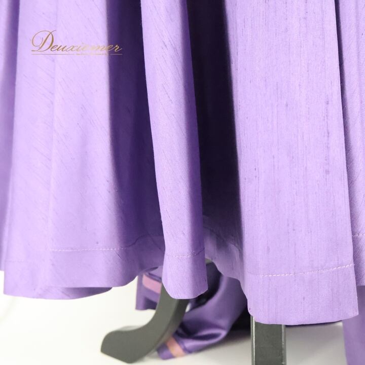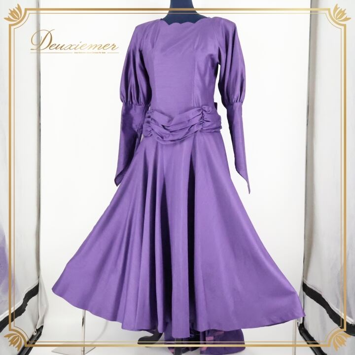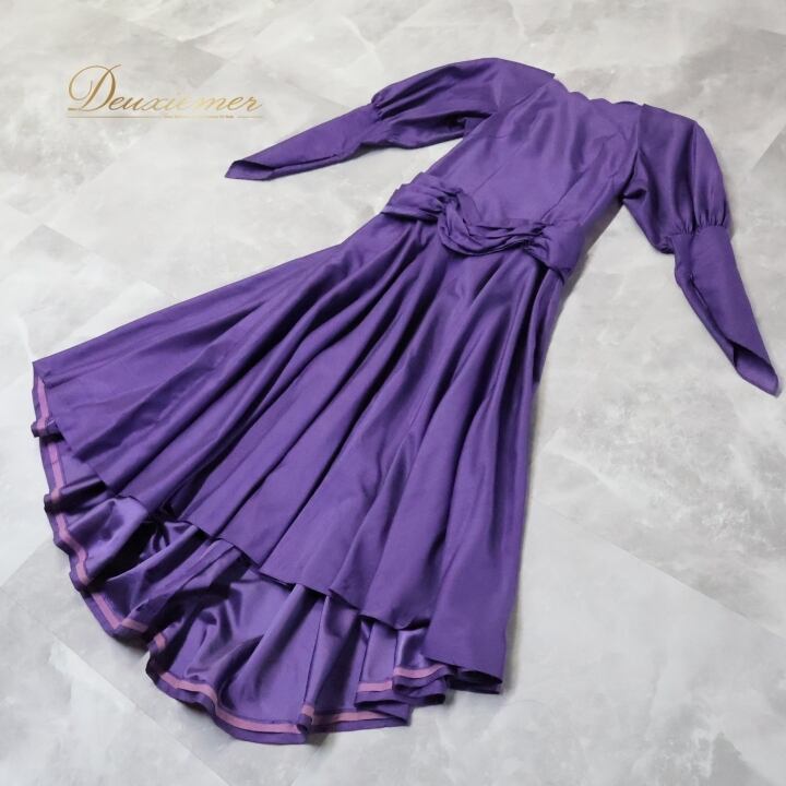 #フラダンス #衣装 #ワンピース #ドレス #パープル #シンプル #光沢 #ファッション #トルソー #ダンス衣装 #女性用 #背面リボン #肩パッド #ウエスト #スタイル #実測 #エレガント #パーティー #コスプレ #ENUTSU