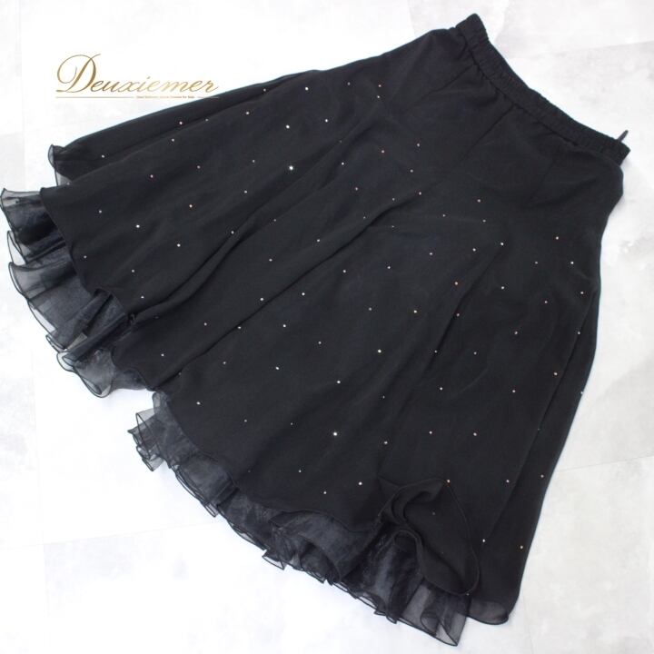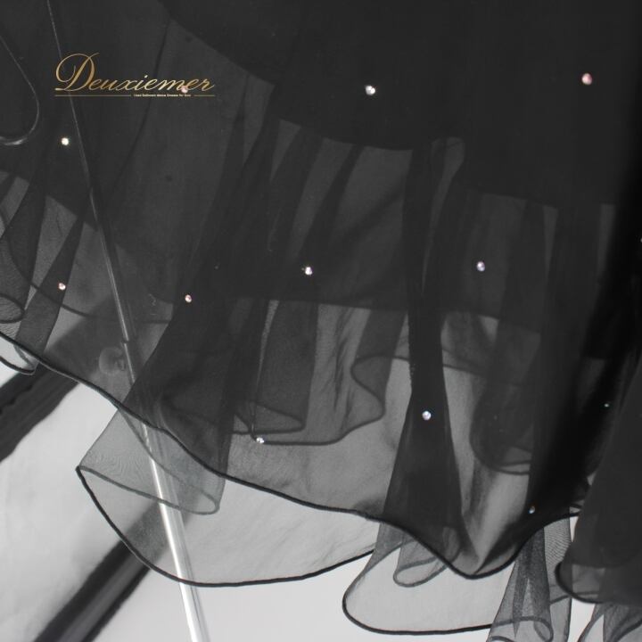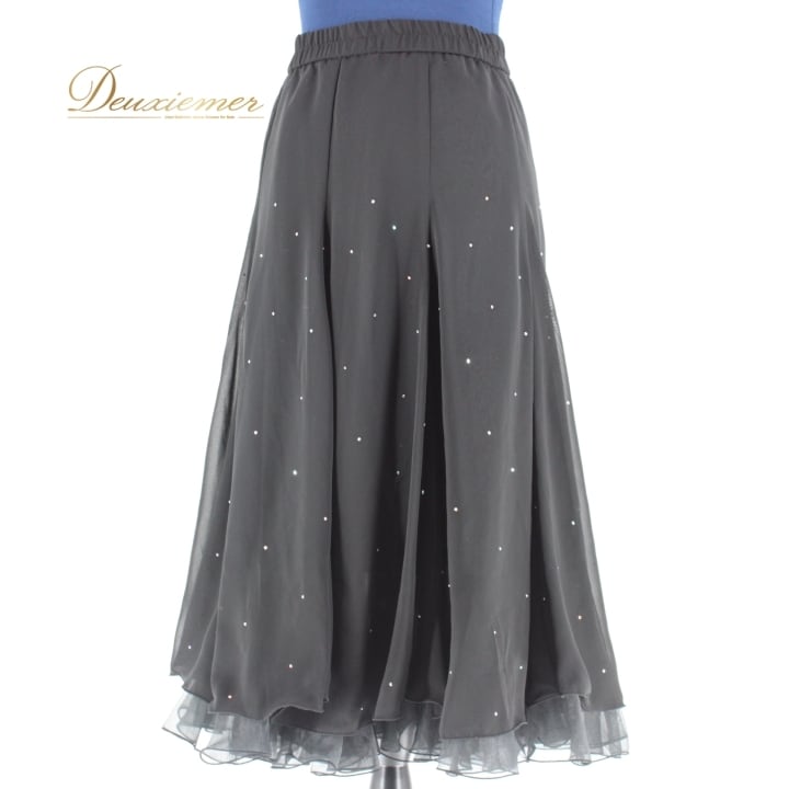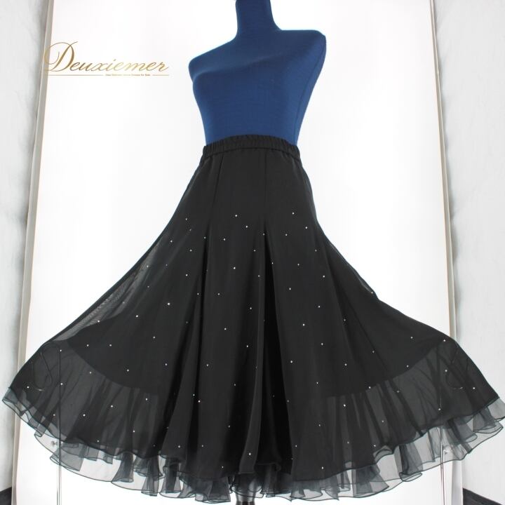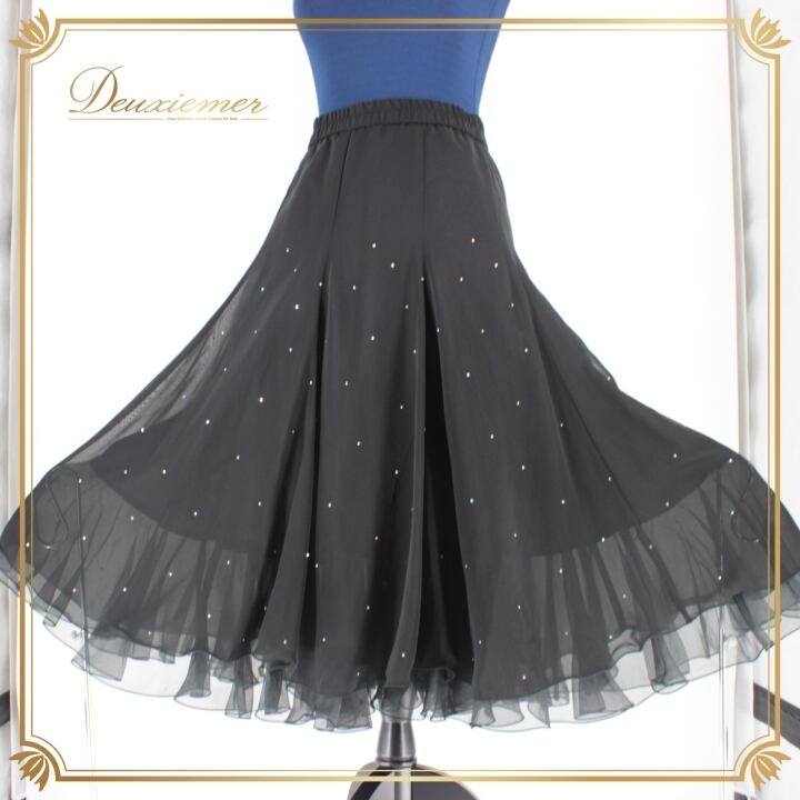 社交ダンス 衣装 スタンダード スカート レッスンウェア 女性用 レディース オールシーズン 黒 オーガンジー シフォン ブラック系 ラインストーン クラシック デザイン フィット感 おしゃれ 輝き 軽量 ストレッチ 上品 ダンス衣装 パーティー お揃い レッスン用 スカートスタイル シフォン素材 ウエストゴム フロアスカート シルエット おすすめ 77cm丈 シンプルスタイル