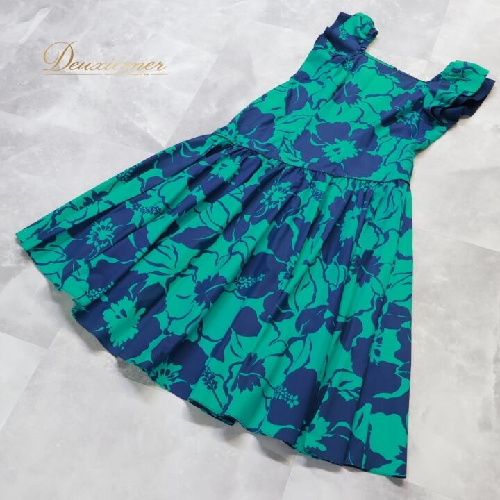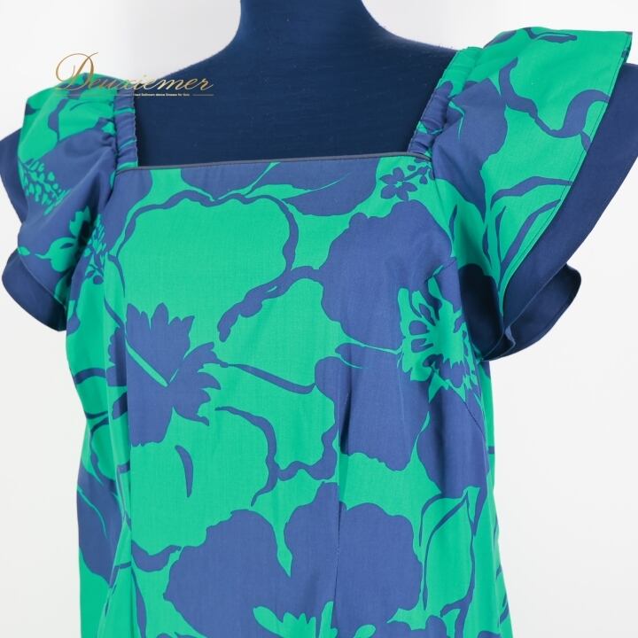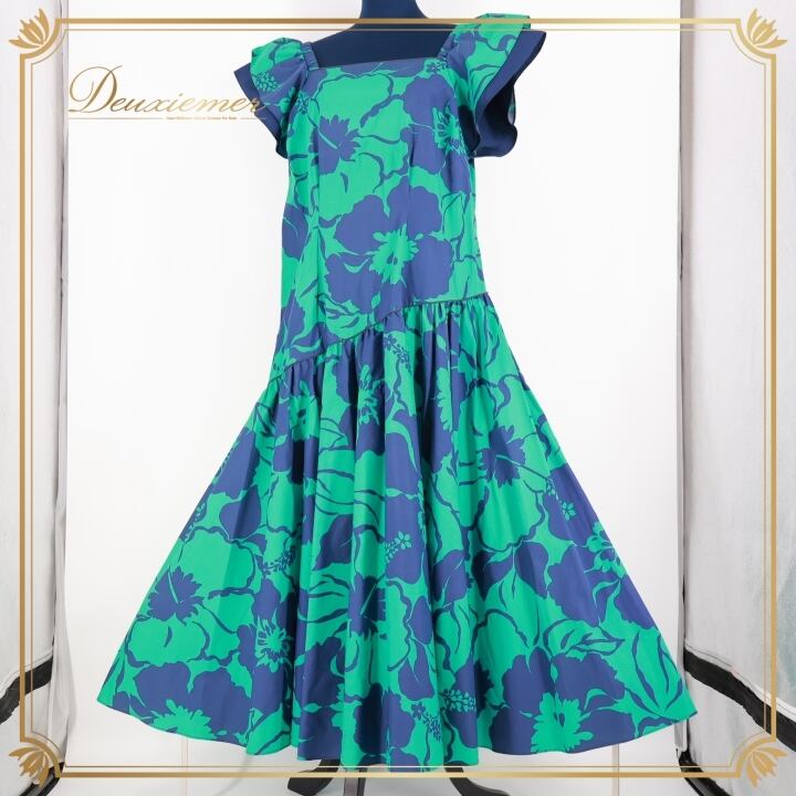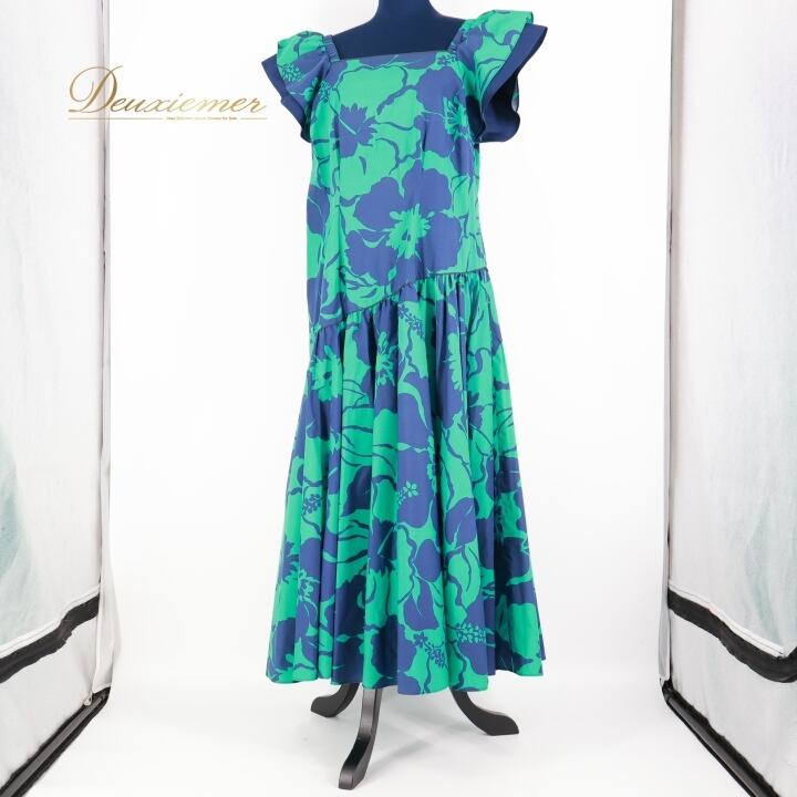 #フラダンス #フラダンス衣装 #ドレス #ワンピース #花柄 #華やか #グリーン #ネイビー #アロハ #ハワイアンスタイル #ダンス衣装 #女性用トルソー #サイズ9号 #カラフル #パーティー #特別な日 #ヘルシーライフ #伝統文化 #装飾 #ENUTSU