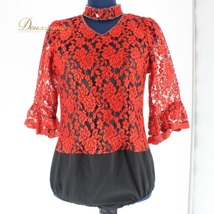 #社交ダンス #ダンス衣装 #ダンストップス #日本製 #ブラックレッド #花模様 #ラインストーン #ファスナー仕様 #ストレッチ #レオタード #肩パッド #ダンスウェア #ダンスファッション #女性用トルソー #社交ダンス衣装 #ダンススタイル #トレーニングウェア #コスチューム #パフォーマンス #ダンスライフ #ENUTSU