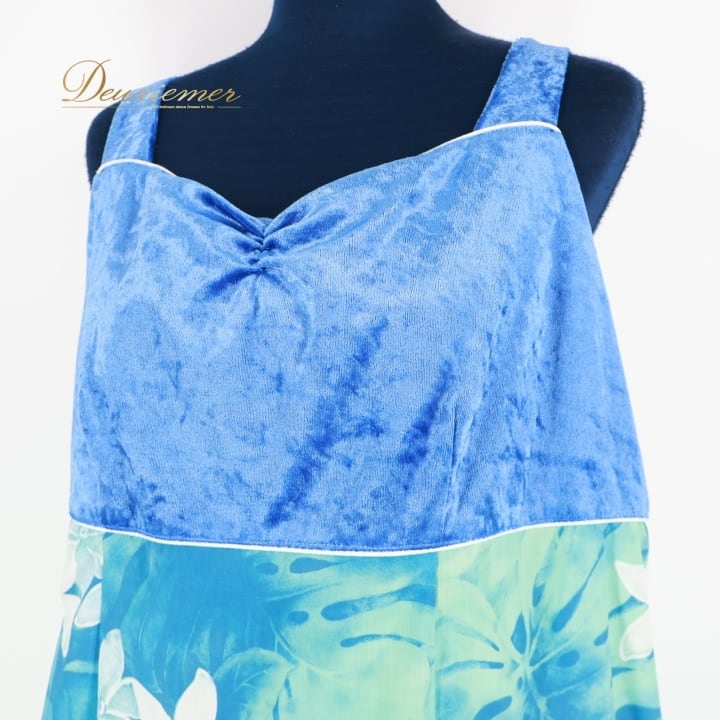 #フラダンス #ハワイアン #ドレス #衣装 #マーメイドライン #ブルー #グリーン #ホワイト #グラデーション #プリント #日本製 #ファッション #ワンピース #女性用 #トルソー #おしゃれ #カジュアル #夏 #ダンス #ENUTSU