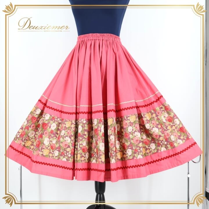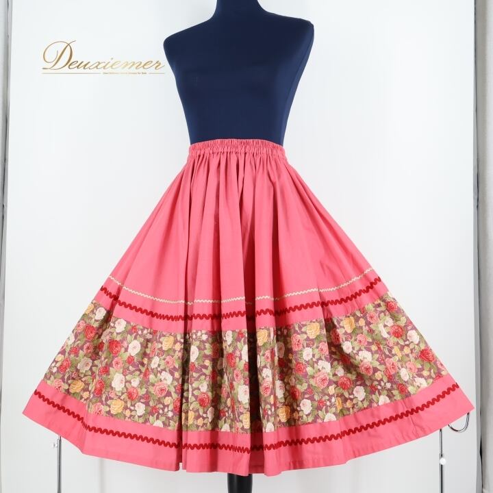 フォークダンス 衣装 スカート ピンク系 バレリーナ 花柄 チロリアン レトロ ballerina 赤 緑 白 金 かわいい カントリー ふんわり 華やか レッド系 イエロー系 グリーン系 ゴールド系 ホワイト系