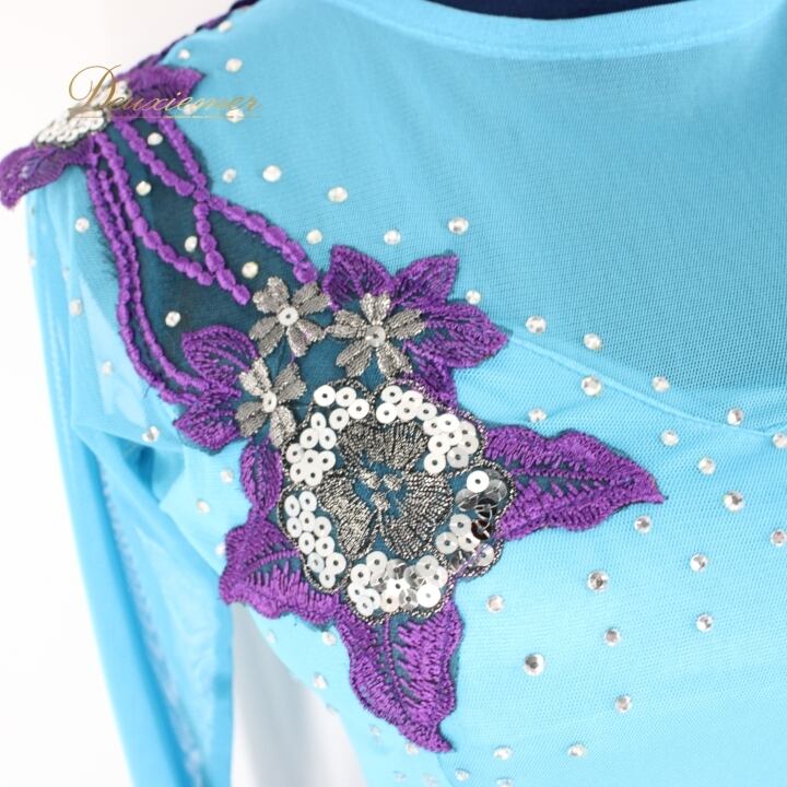 社交ダンス 衣装 スタンダード ドレス ワンピース パーティ衣装 女性用 レディース オールシーズン 水色 ブルー系 Leirena レイリーナ ラインストーン スパンコール マルチカラー 二重仕立て スカート ステージ映え おしゃれ フェミニン 高級感 コンペティション 審査会 ダンスパフォーマンス 衣装レンタル 楽器 グリッター 豪華 体型カバー ストレッチ素材 上品