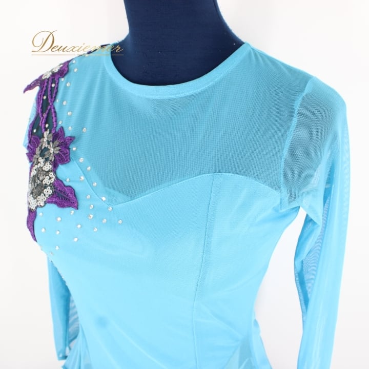 #社交ダンス #ダンス衣装 #ダンスドレス #ライトブルー #マルチカラー #スカート #ラインストーン #スパンコール #ファスナー #ホック留め #伸縮性 #女性用トルソー #ステージ映え #ダンスファッション #ポリエステル #綿100 #ダンスパフォーマンス #ふんわりスカート #国際ダンス #Leirena #ENUTSU